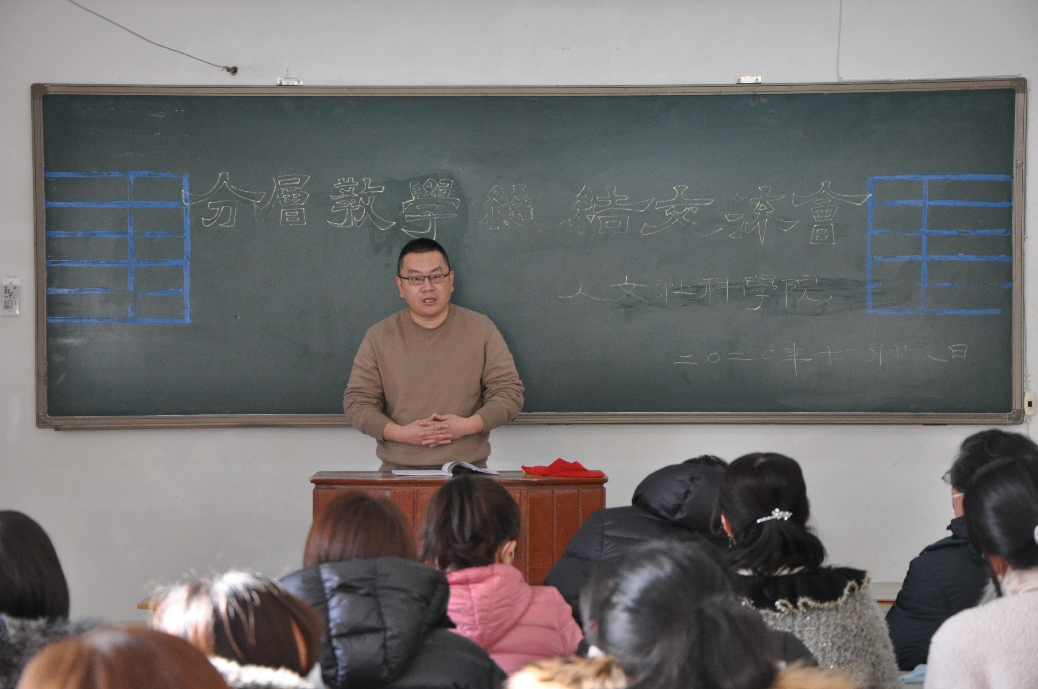 第一是人文学院的创新教学。分层教学如果只是固化在传统的方法上,不会有这样的收获,都是因为每位教师都在研究、创新。每个大学、学院、班级都是不一样的,如果固守单一的传统方法,肯定会带来解决不了的问题,只有我们不断的创新,不断围绕新的学情,不断探讨和研究新方法,才能使分层教学走得深远。鼓励每一位教师,根据自己的学情,有的放矢的创新。