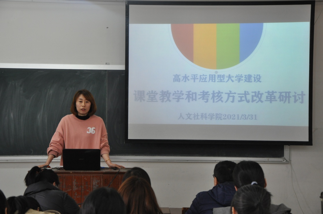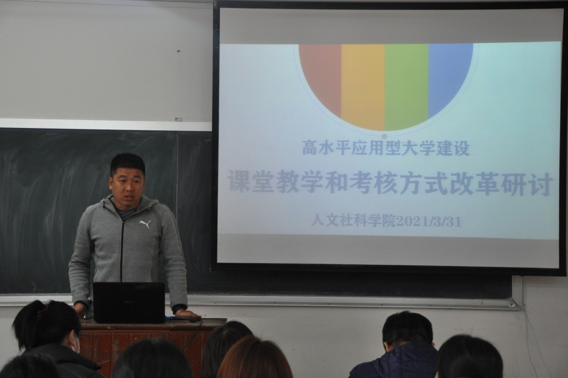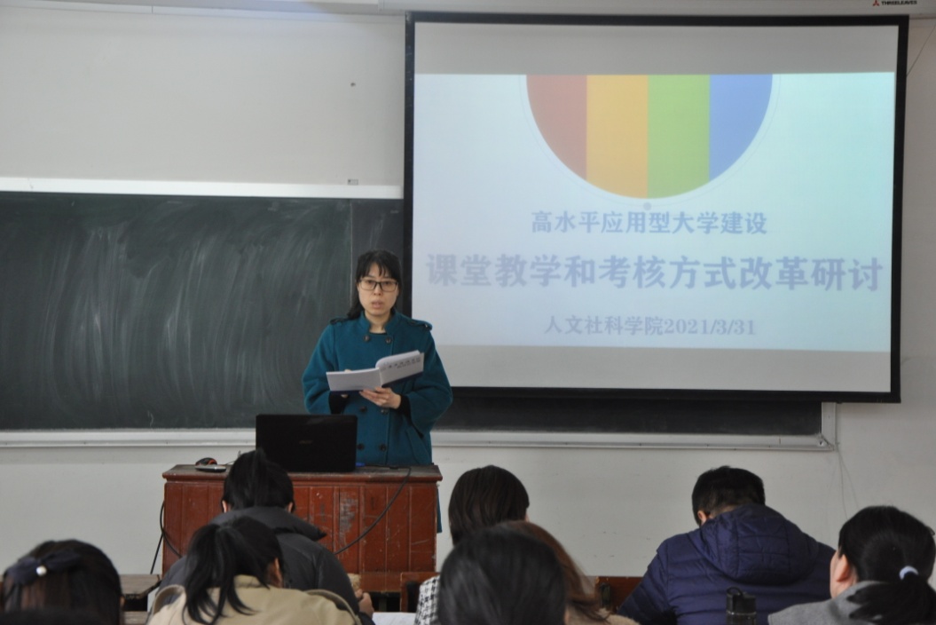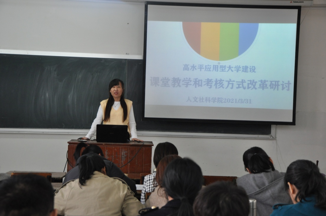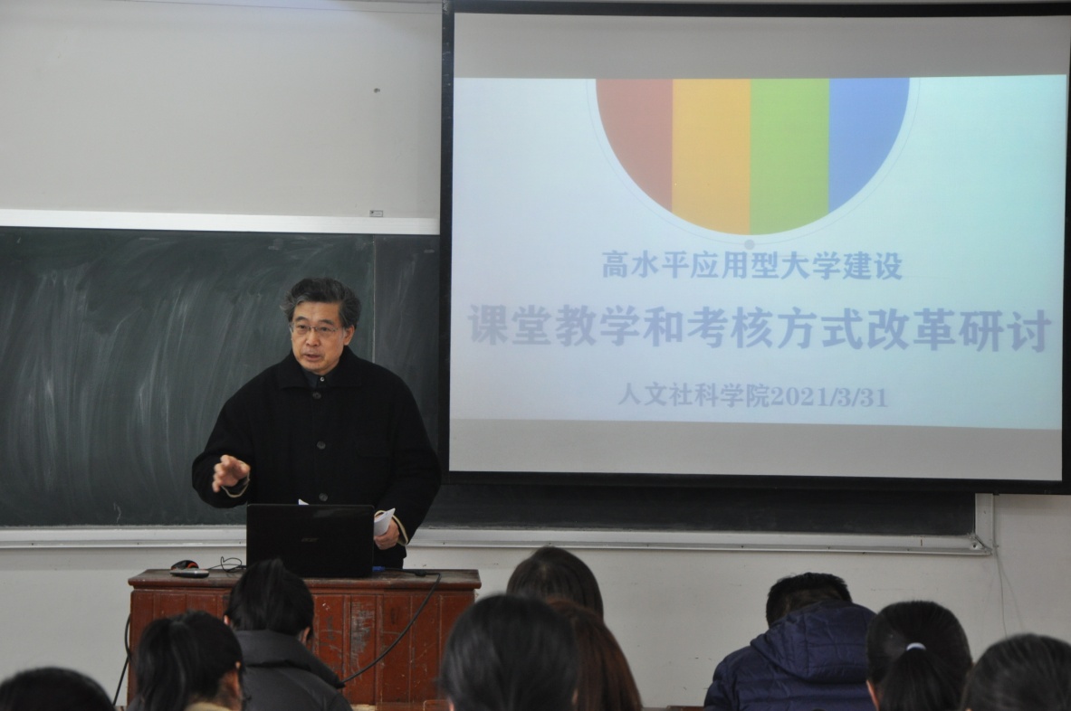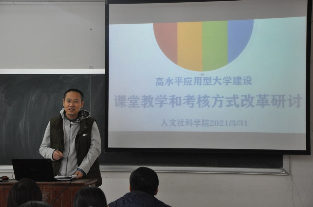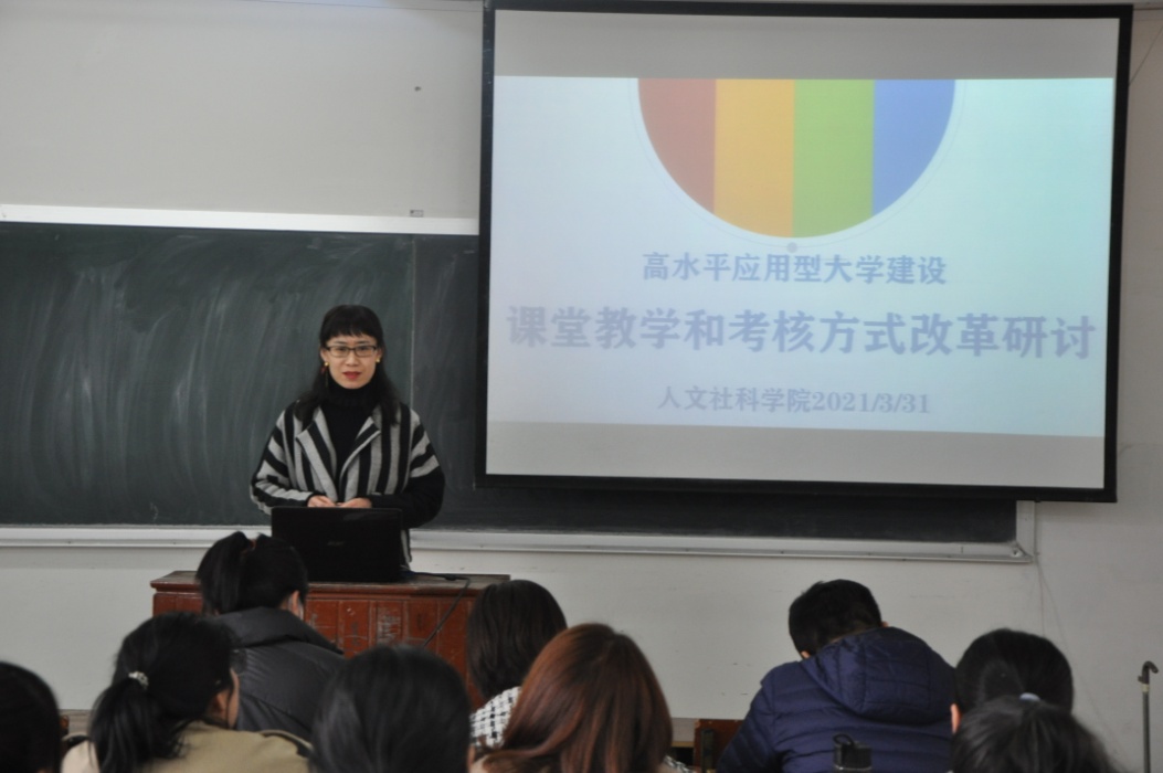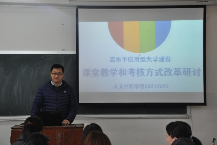 2021年3月31日(星期三)下午,人文社科学院在志存楼125教室举行了高水平应用型大学建设第四次研讨会。本次会议由吕元主任主持,人文社科学院陆芳蕊主任、肖剑平主任及全体教师参加。人文社科学院关四平院长莅临会议,听取会议内容,进行点评和总结并部署下一阶段工作。
