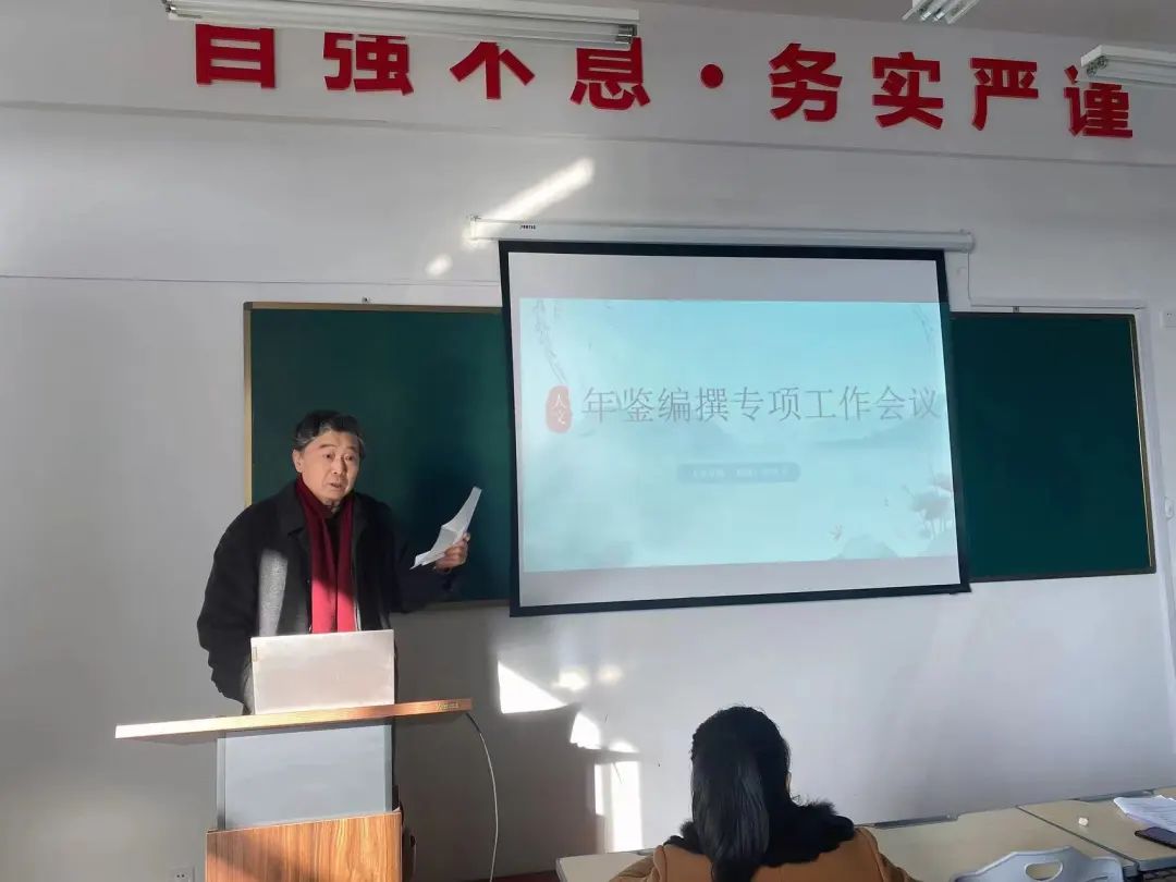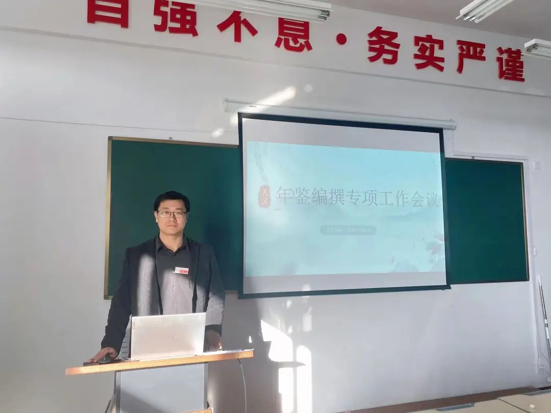 为保质保量完成《2023太阳成集团官方网站年鉴》编撰工作,4月3日下午4时,人文学院在人文楼312教室组织召开了《年鉴》编撰专项工作会议。人文学院吕元副院长及参与编撰《年鉴》的诸位教师参加此次会议,会议由吕元副院长主持。