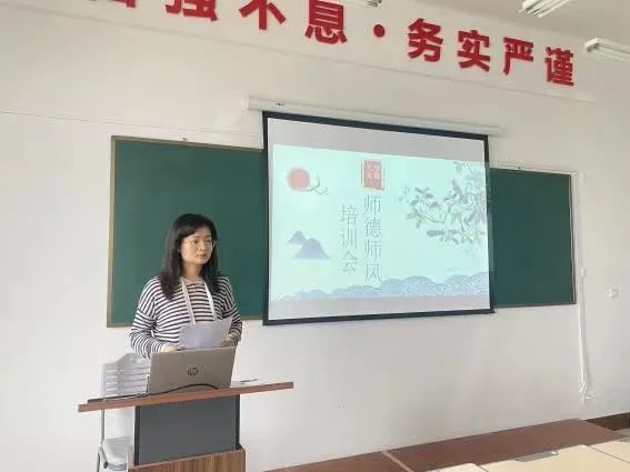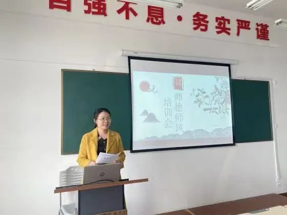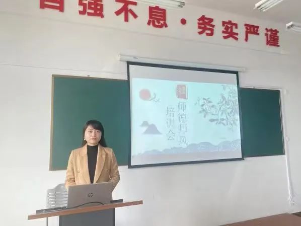胡颖丽老师宣讲了《关于加强和改进新时代师德师风建设的意见》的文件,并说出自己的感想:教师的职业道德规范要求教师爱国守法、爱岗敬业,要自觉自愿地承担起教书育人的责任,在具体的教学工作中,要关爱每一位学生,在教书的同时,更要注重育人,在思路上对学生进行引导,教师通过传授专业知识、关爱学生,引导学生实现人生价值。