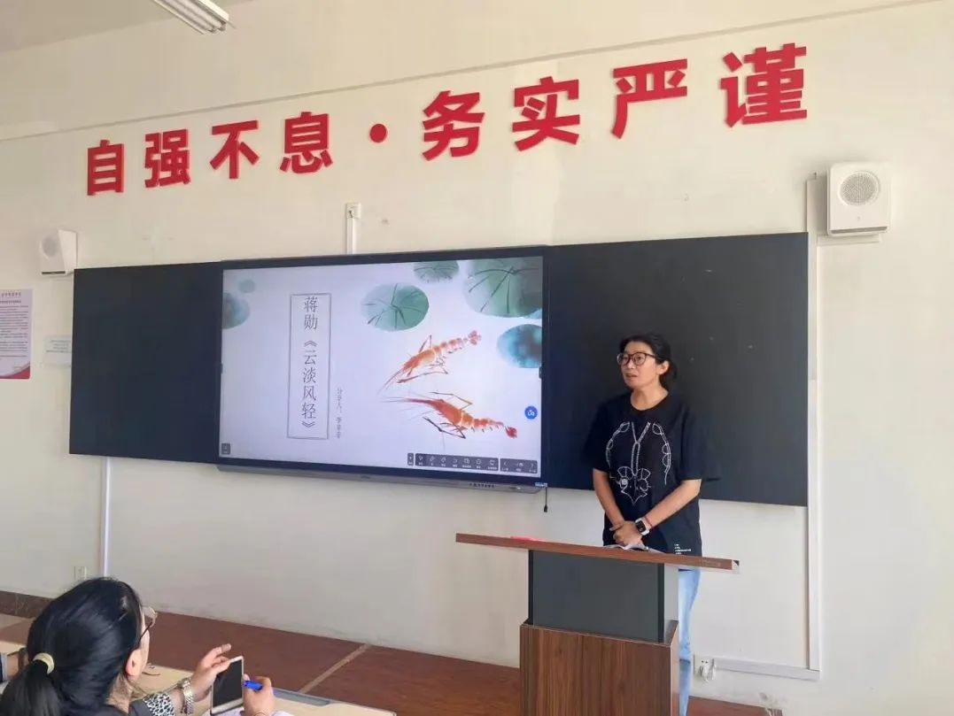 另一位教师刘菲菲从一个童年视角的角度,解读萧红的《呼兰河传》。她详细地阐述了通过童年视角描绘的社会现实与个人情感的复杂交织,展示了文学如何作为一种力量揭示历史与人性。她的分析不仅体现了深厚的学术背景,也彰显了对文学作品深刻的敏感度和理解力。