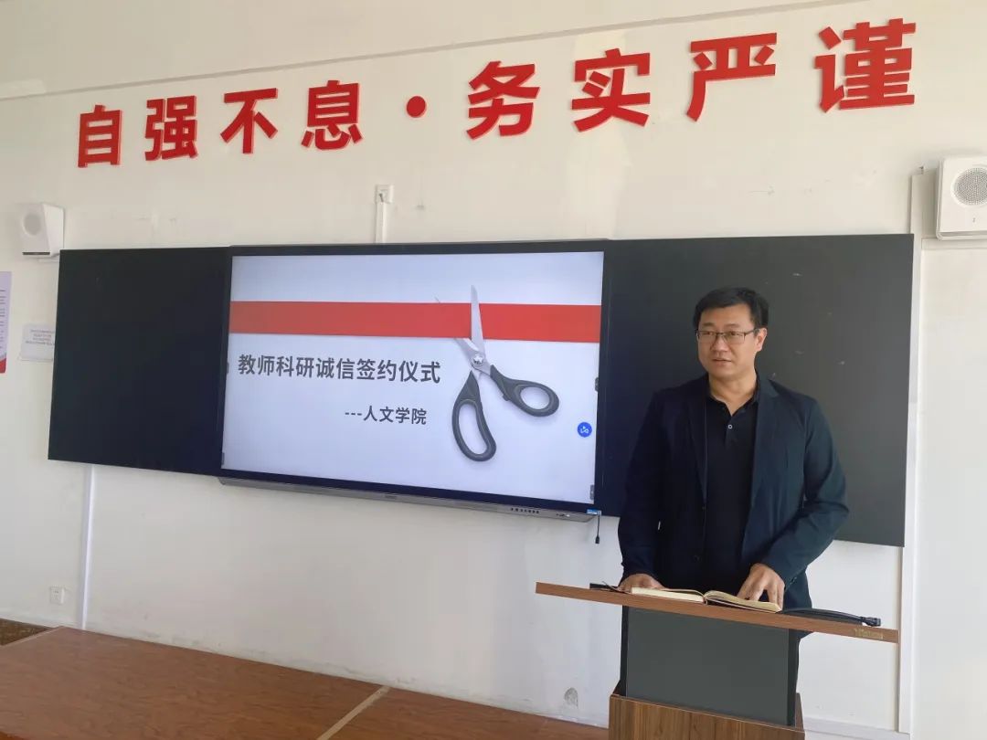 为了营造诚实守信的良好科研环境,促进科研水平提升,人文学院全体教师签署《科研诚信承诺书》。通过本次《科研诚信承诺书》的签订,大家深刻认识到在研究开展、论文撰写过程中都应恪守职业规范与科学道德:不得抄袭、剽窃他人成果或伪造、篡改研究数据、研究结论;不得购买论文;不得违反署名规范等。在做好教学工作的基础上,要发挥好科研引领的作用,强基础、促转化,坚持人尽其才、才尽其用的师资能力提升原则,发挥自我特长。