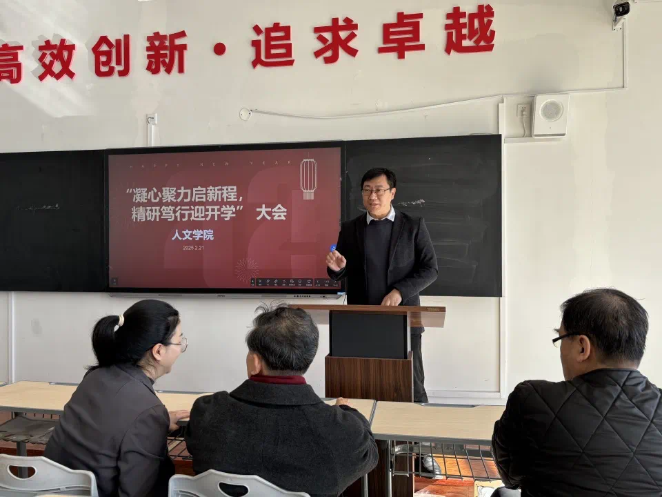 2025年2月21日上午,在人文楼404教室,人文学院召开新学期全体教师大会。