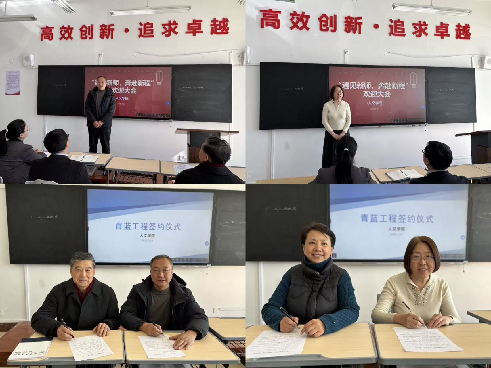 会议紧接着举行新教师欢迎与青蓝工程签约仪式。新教师自我介绍之后,学院为他们安排了蓝方指导教师。新教师的加入为学院注入了新鲜血液和无限活力,两位新教师表示会尽快融入教学团队,为学院的发展贡献自己的力量。