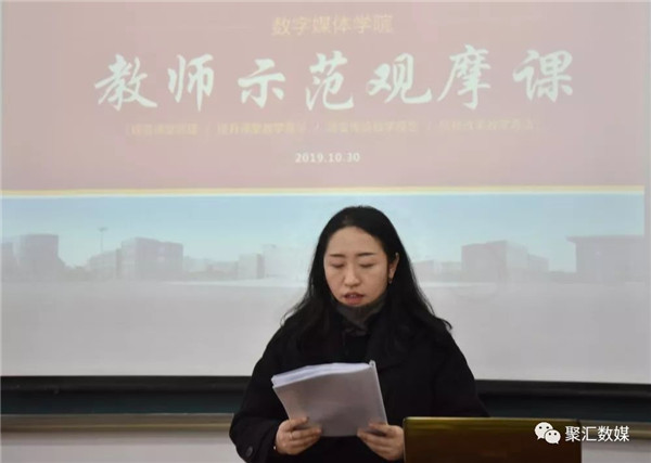 英皓副院长首先介绍了本次活动目的和意义。自学校10月9日启动全校教风建设活动月启动以来,数字媒体学院积极响应并落实学校要求,研读教育部《深化本科教育教学改革全面提高人才培养质量的意见》、中共中央国务院《关于全面深化新时代教师队伍建设改革的意见》,结合数字媒体学院发展实际,也为进一步提升学院本科课堂教学质量与教学水平,促进教师教学方法的改革与创新,数字媒体学院依据学院教风建设月的活动方案,组织策划本次强化“内容优、管理优”的双优公开示范课展示交流活动。