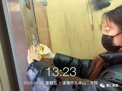 战“疫”的号令吹响以后,数字媒体学院数媒1802班的赵雨芙同学主动投身抗疫一线。在电梯边粘上一次性电梯按钮专用纸,对公共区域进行消毒以及在社区内看见未戴口罩的行人予以提醒,在不同的岗位上贡献着自己的力量。
