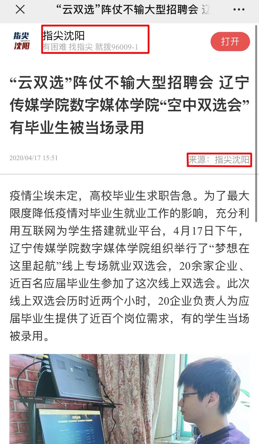 本次空中双选会也得到了社会各界广泛关注,其中沈阳网、指尖新闻详细报道了本次双选会。