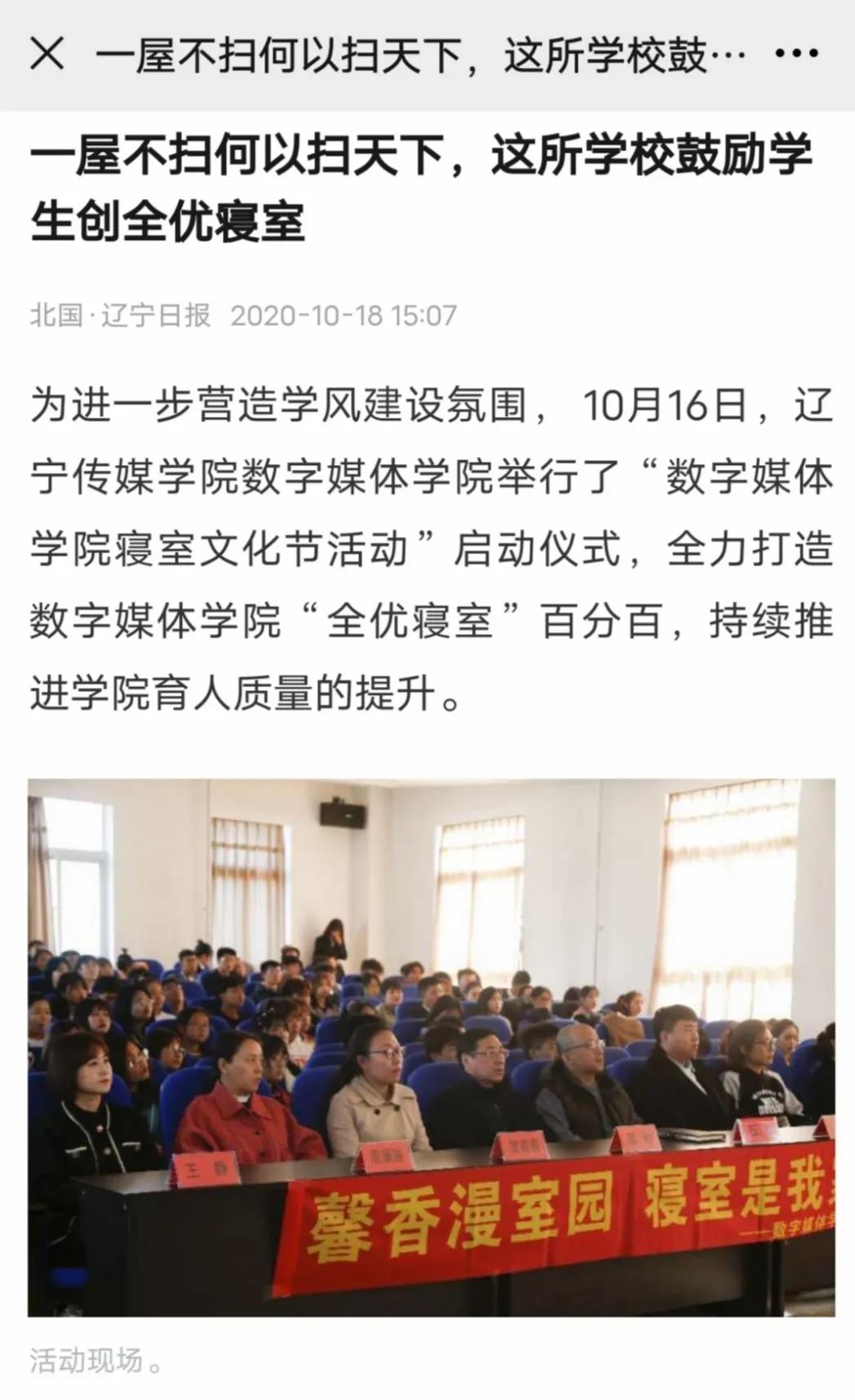 10月18日辽宁日报及新闻媒体报道太阳成集团官方网站数字媒体学院学风建设活动寝室启动仪式活动。