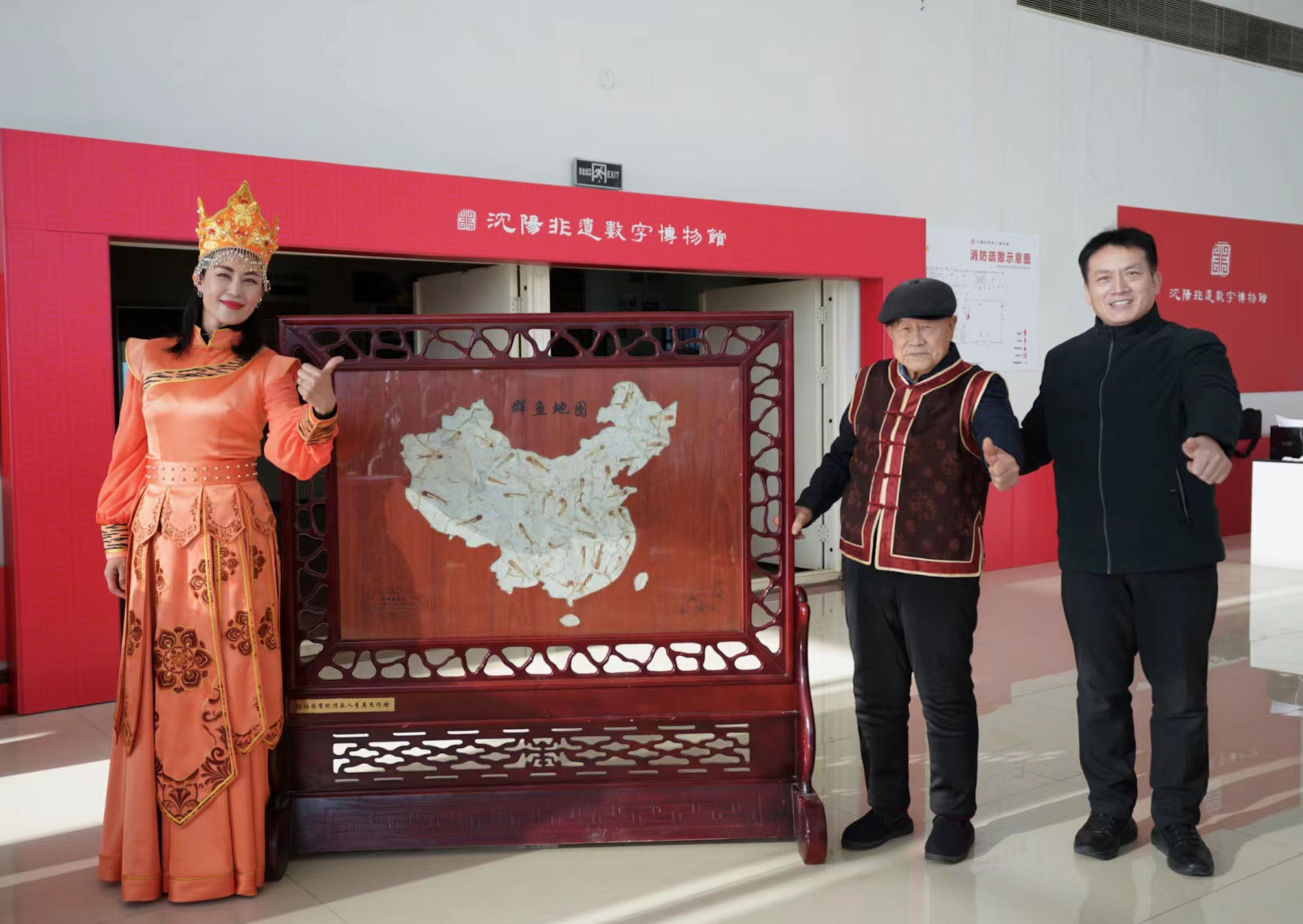 沈北新区宣传部曹部长、非遗馆馆长王东辉教授、李英杰先生共同为捐赠藏品揭幕