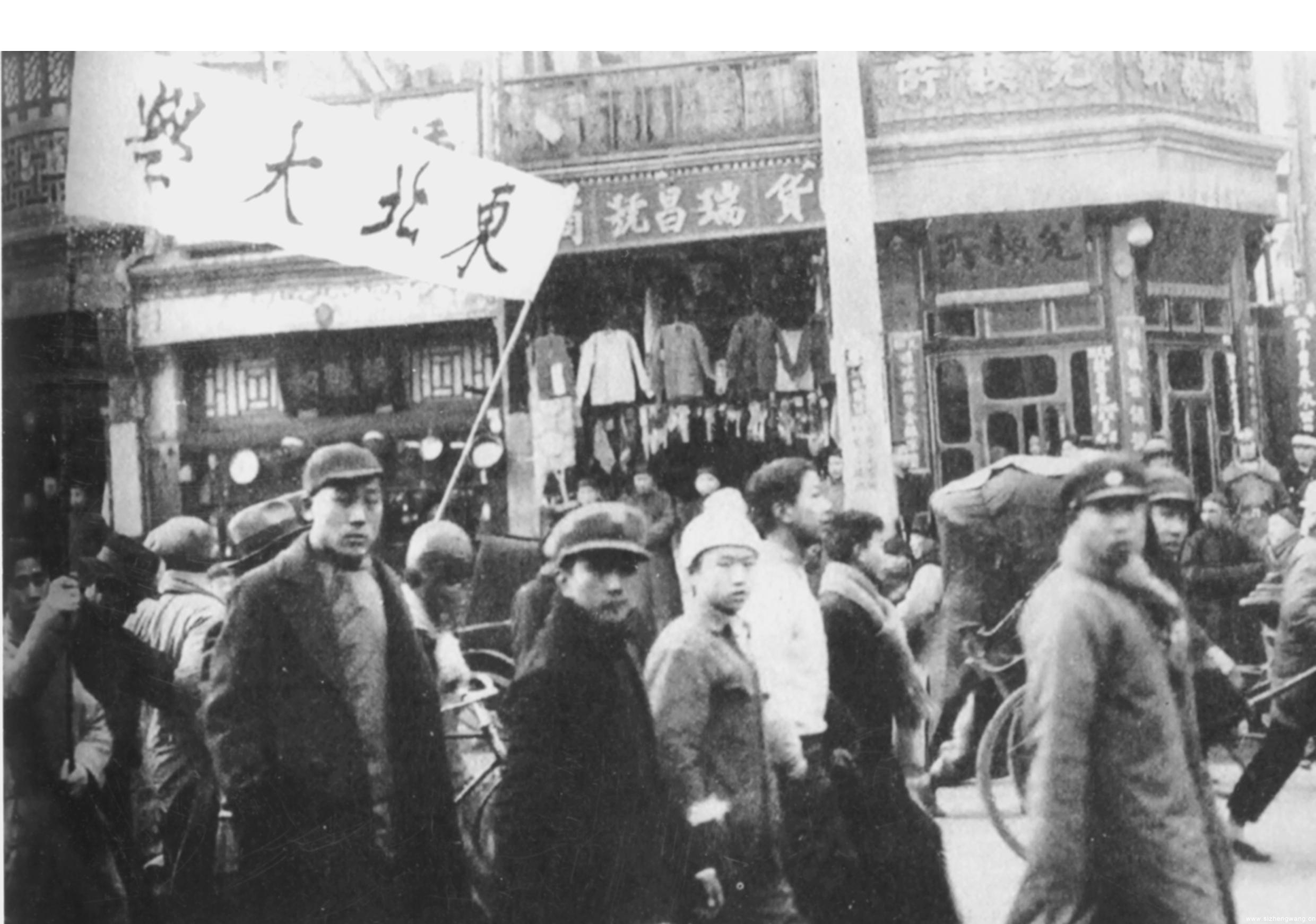 1935年12月9日,北平(北京)大中学生数千人举行了抗日救国示威游行,反对华北自治,反抗日本帝国主义,要求保全中国领土的完整,掀起全国抗日救国新高潮。12月12日,北平学生举行第5次示威游行,高呼“援助绥远抗战”、“各党派联合起来”等口号。这是中国共产党领导的一次大规模学生爱国运动。