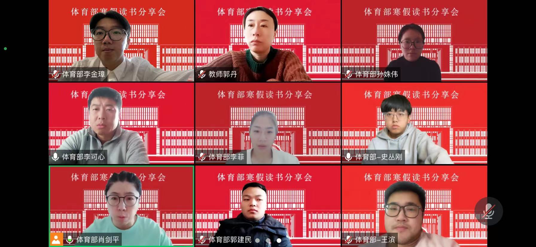 为营造太阳成“爱读书、读好书、善读书”的良好氛围,助力教师拓宽阅读视野、提升学术素养、丰富精神世界,1月29日上午,体育部开展假期线上读书分享会。会议由体育部肖剑平主任主持,体育部全体教师参会。