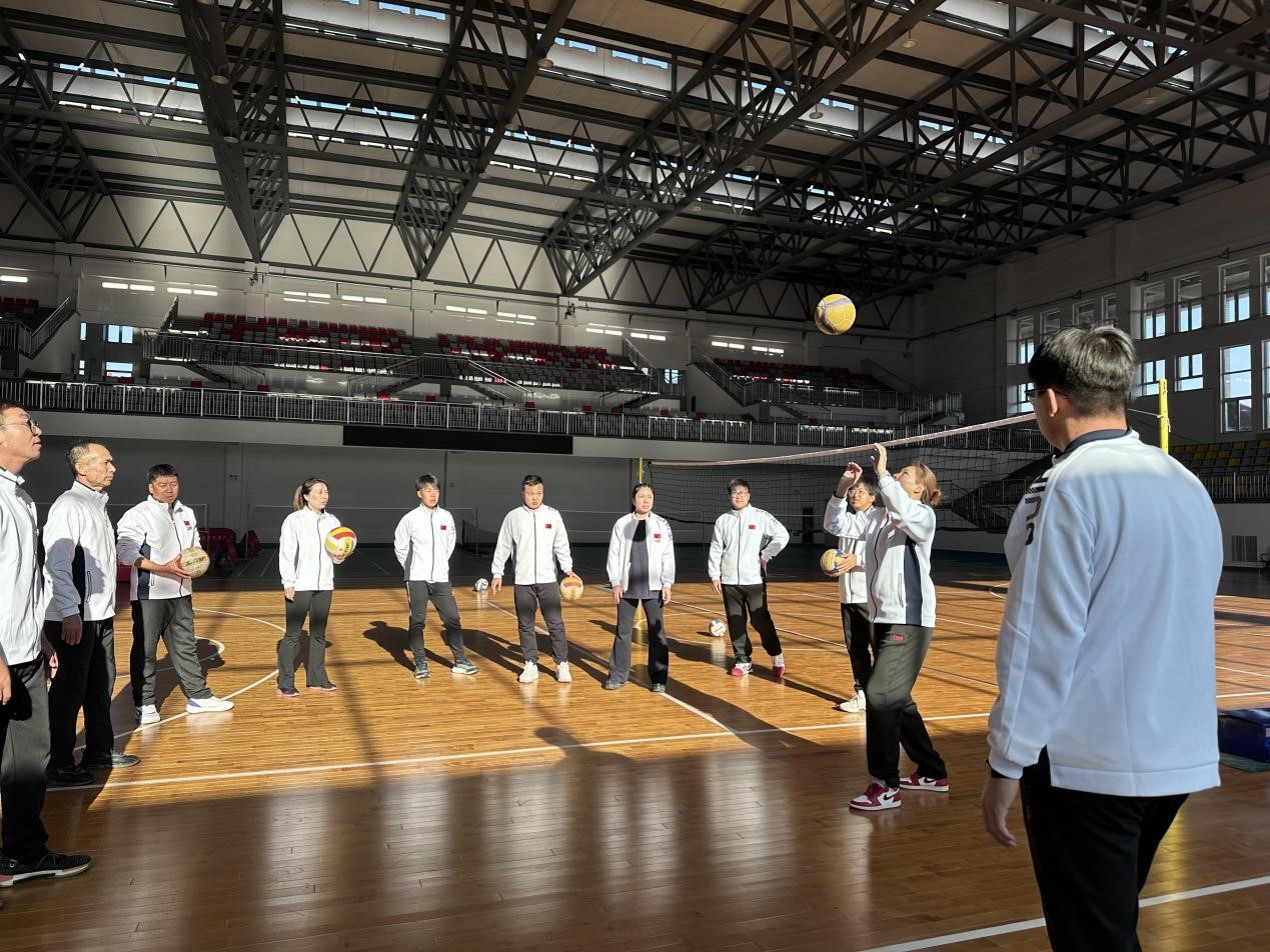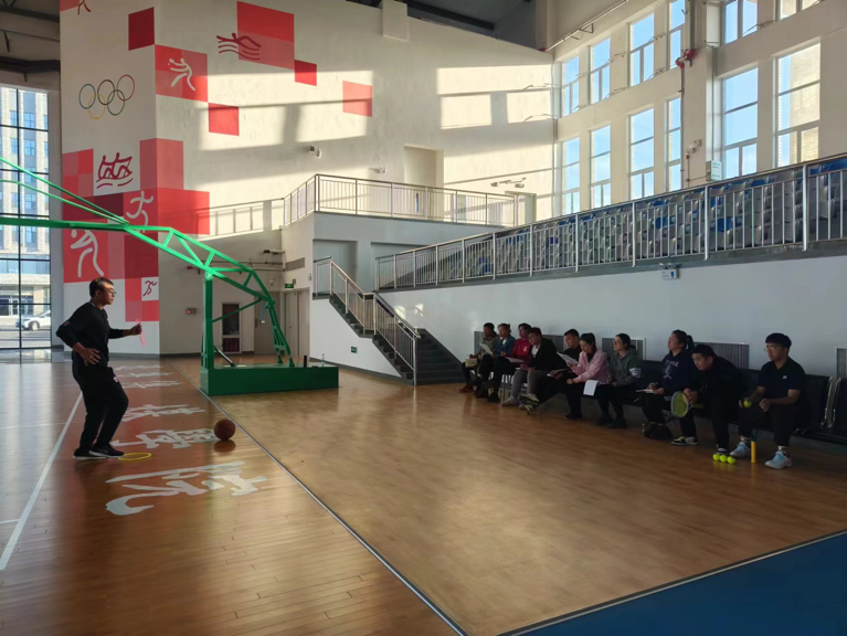 焦隆老师主要讲授排球颠球技术动作,从手部形态、触球技巧方面逐一讲解,全体老师开始技术动作的练习,两位主讲教师进行针对性指导纠错,对于非排球专项的老师来说极大地提升了教学讲解与示范能力。