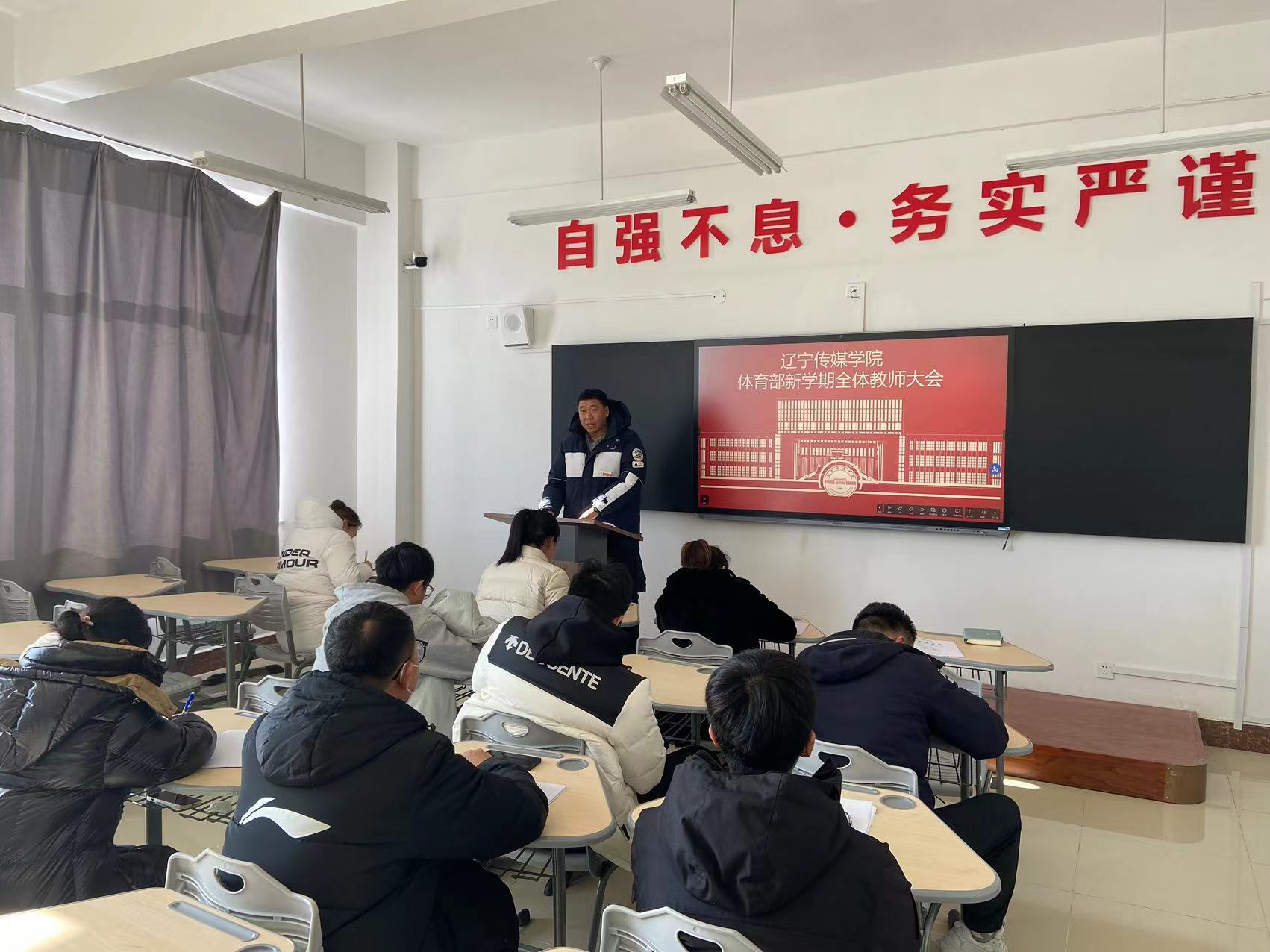 踵事增华行致远,云程发轫谱新篇。本次全体教师大会是统一思想、凝聚共识、鼓舞斗志的集体动员会,为体育部有序开展新学期工作指明了方向。踏入新学期,辽传体育部全体教师会继续牢记教书育人的初心使命,以饱满的工作热情、扎实的工作作风和追求卓越的奋斗精神,紧跟辽传飞速发展的步伐,用实干优绩助推学校高质量发展,向更高的目标迈进,谱写新的篇章!