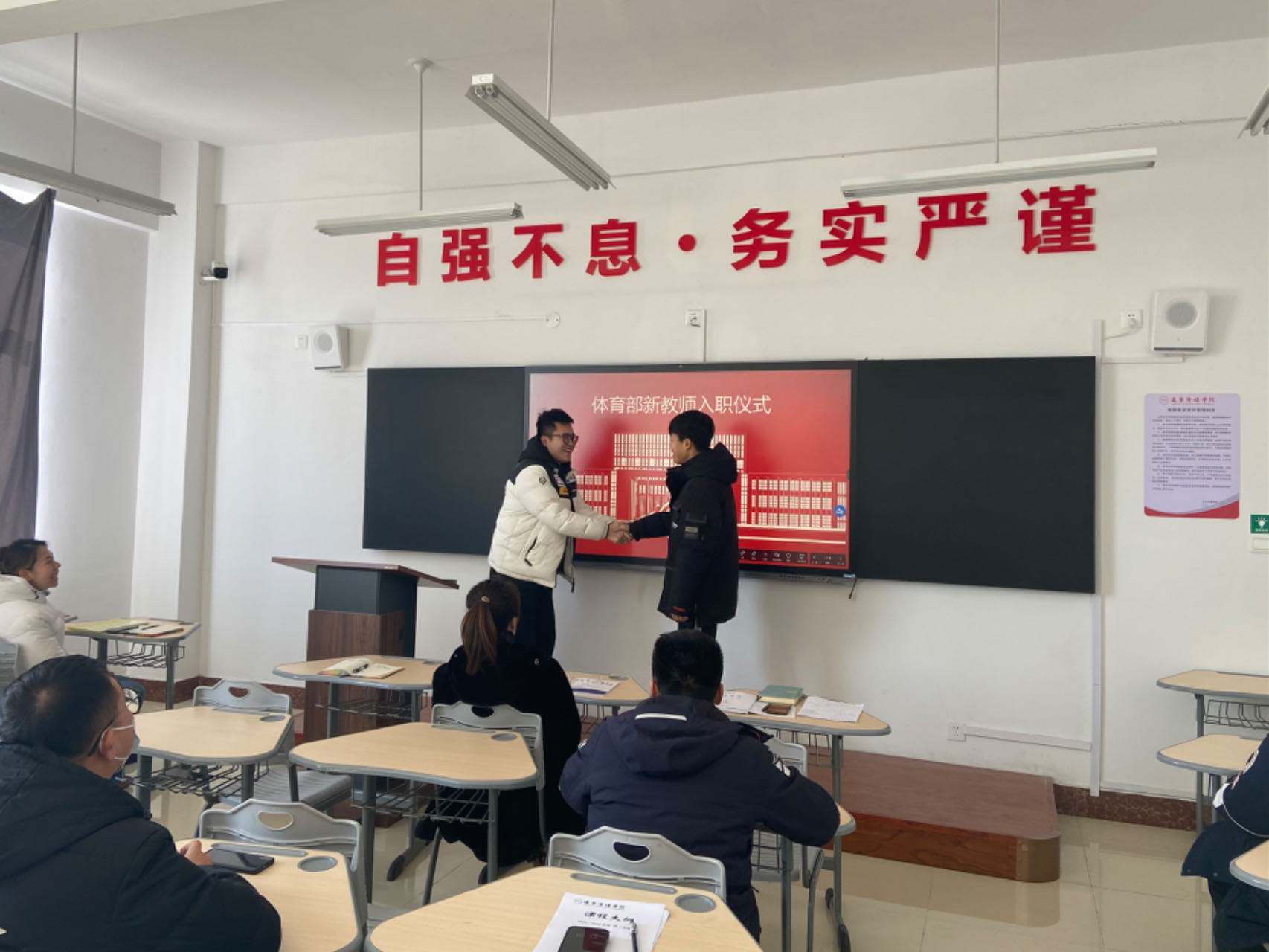 本次大会还举办了新教师入职的欢迎仪式。首先,新入职的孙鲁宁老师进行了自我介绍,随后,体育部的全体教师分别对孙老师传达了新学期寄语。