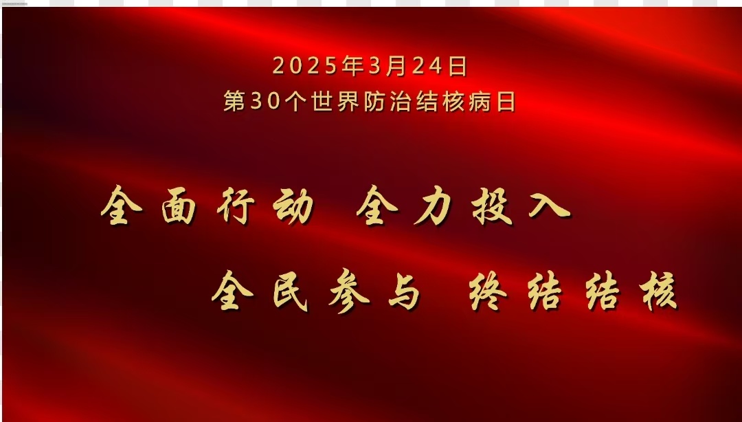 2025年3月24日,我们将迎来第30个世界肺结核病日。今年的宣传主题是“全面行动、全力投入、全民参与、终结结核”,旨在呼吁全球共同努力,终结肺结核这一古老的传染病,为全人类创造一个更加健康的未来。