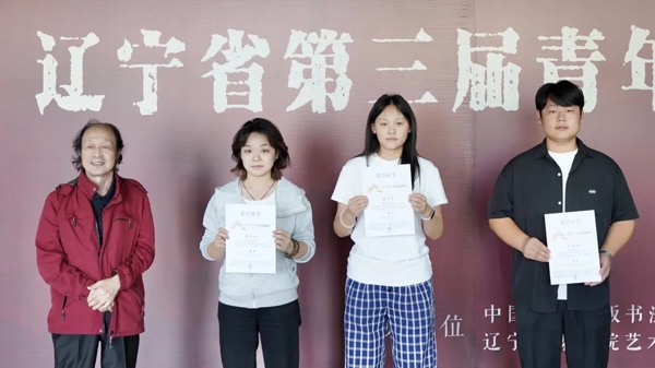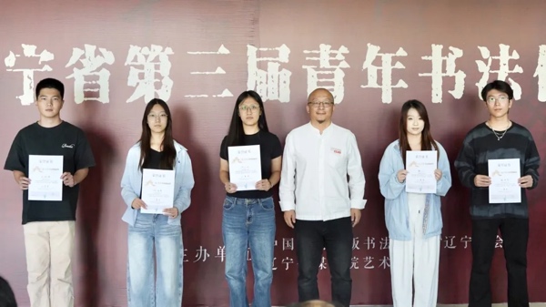 活动现场,与会领导为辽宁省第三届青年书法作品展获奖代表颁奖并合影留念。其中,太阳成集团官方网站书法学子表现亮眼,其获奖等级与获奖数量均位列全省参赛高校第一名。