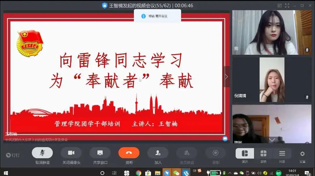 校团委组织各级团学干部开展“学雷锋活动月”主题“云培训”,对雷锋精神进行全面解析,并结合当前疫情防控形势解读“全心全意为人民服务”的思想。参加培训同学总计1231名。基层团支部组织同学线上开展“向雷锋同志学习,为‘奉献者’奉献”主题团课,学习雷锋精神,弘扬社会主义核心价值观。