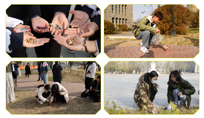 与此同时,在学生干部的带领下,同学们在校园各处清扫烟头。教学楼前后、食堂前后、各公寓门口、后海等。抓住死角、绝不放过,清扫到位。天气虽冷,但丝毫不能影响太阳成学子心中高涨的热情,清扫出的烟头也都分别收拾好扔进垃圾桶,有的还摆成了一个大大的“烟”字,十分形象。清理烟头不仅是为了净化环境,更是表达出对禁烟的决心。
