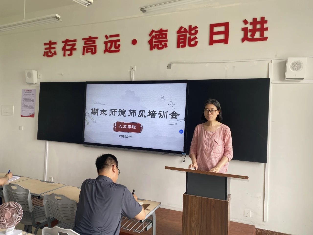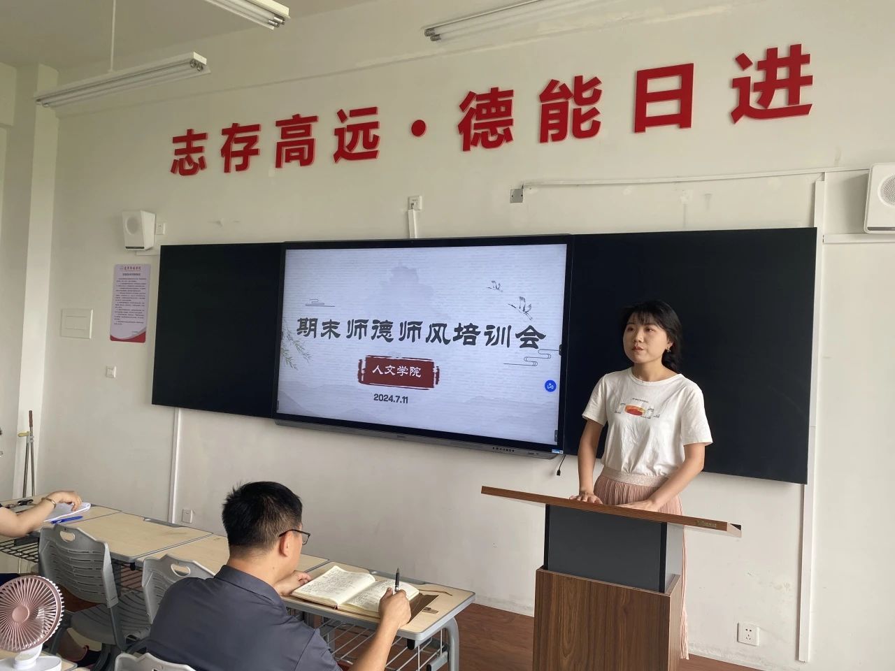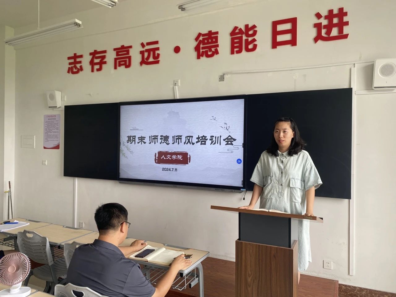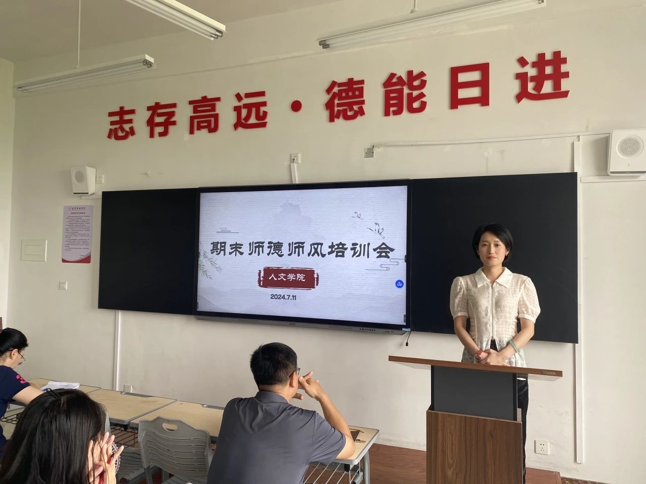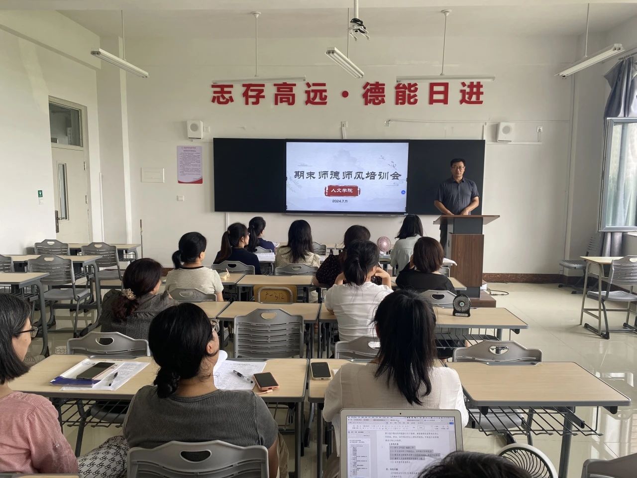 为进一步加强师德师风建设,树立榜样意识,7月11日下午,人文学院教师齐聚人文楼402教室,举行了“期末师德师风培训会”。