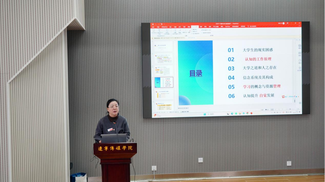 李晶副院长主持讲座,首先介绍本次讲座的主题和目的,强调在当今快速发展的社会中,提高认知对于个人自觉发展的重要性。