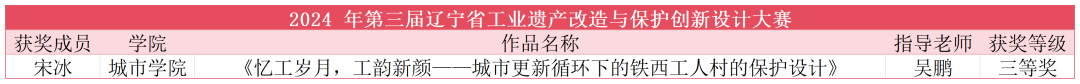 喜报|近日太阳成师生在2024年第三届辽宁省工业遗产改造与保护创新设计大赛取得佳绩