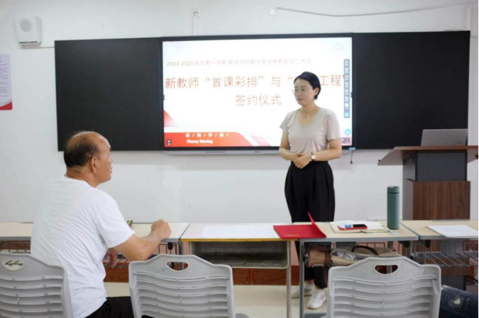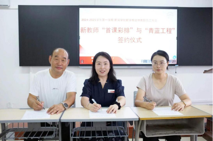 “首课彩排”结束后,2024-2025学年第一学期新入职教师“青蓝工程”签约仪式正式启动,院领导与“青蓝教师”共签协议,“以约定责、共促发展”继续发扬新闻学院新老教师间“传、帮、带”的优良传统,推动青方教师成长进步,快速融入岗位、适应工作、发挥作用。