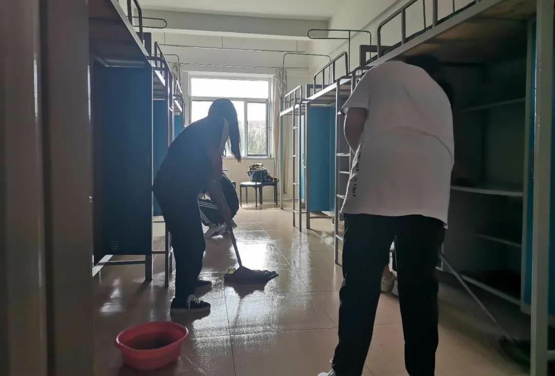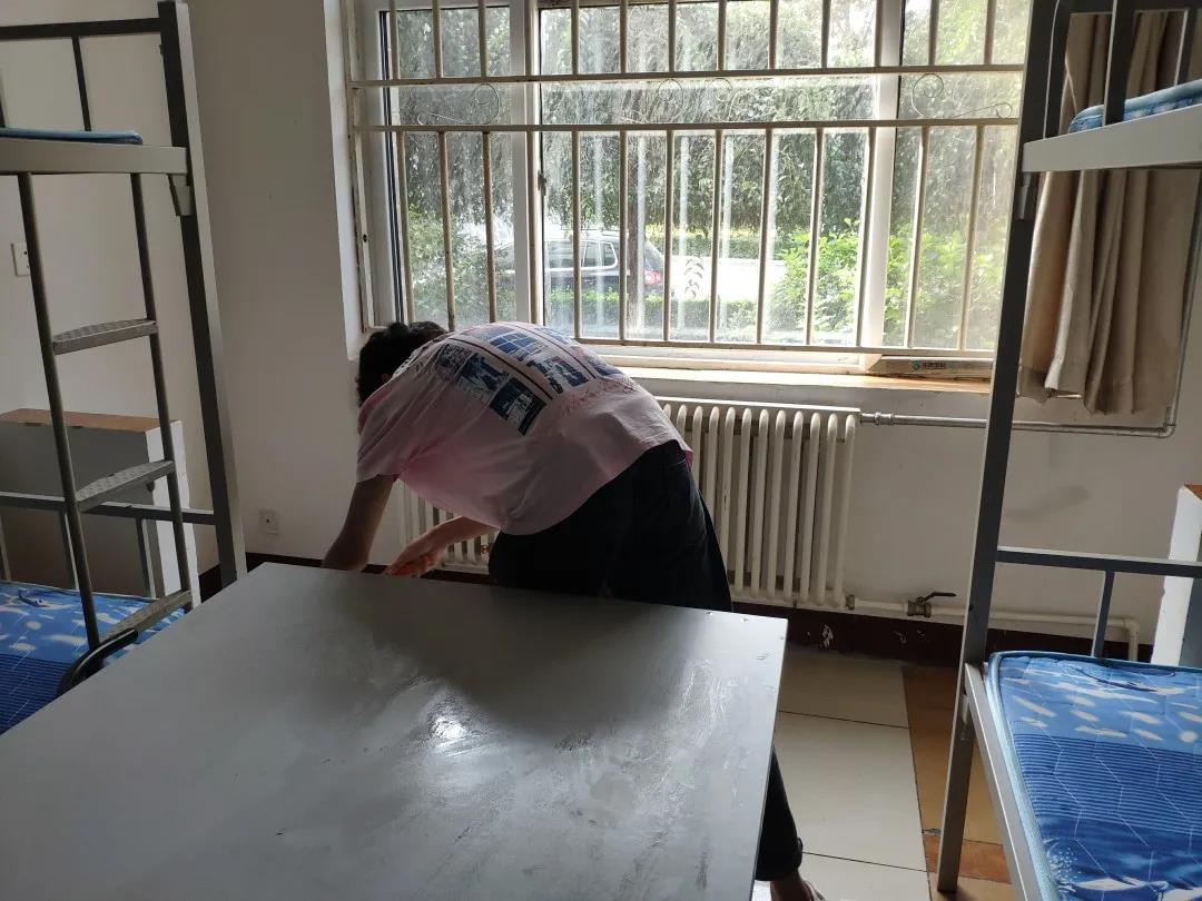 拖地面、擦窗户、擦桌椅、擦柜子、桌面擦了又擦、地面拖了又拖……学长学姐们用自己的实际行动表达了对2020级学弟学妹们的欢迎。我们希望面对陌生环境的你们,能有个干净温暖的“小窝”,希望你能对它一见钟情,愿意将自己的青春寄宿于此。