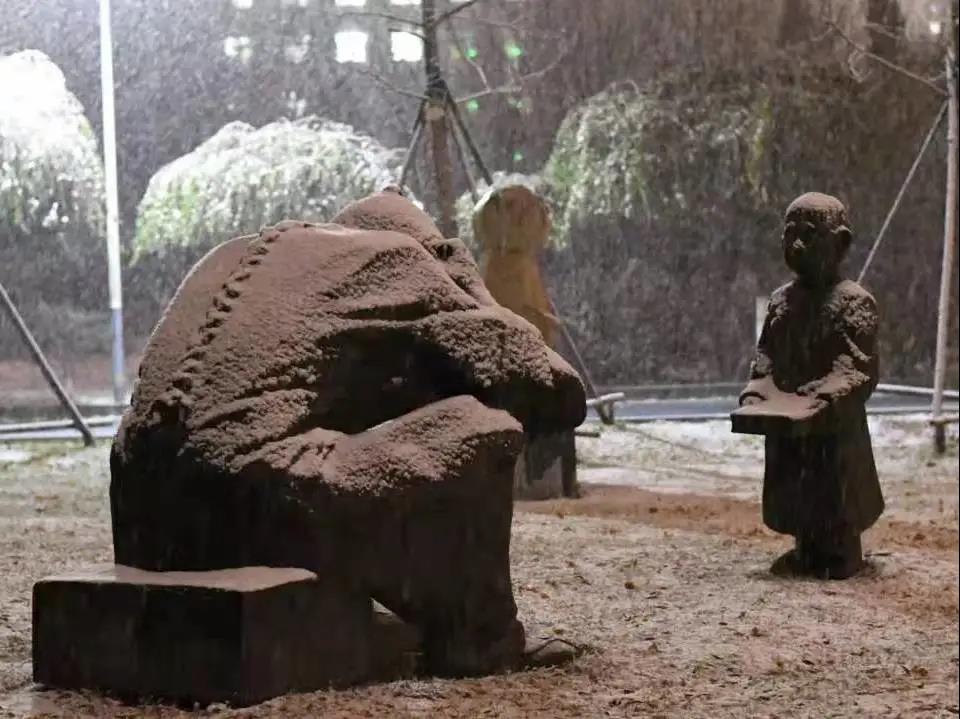 在辽传校园内,雪景相较于外面,多了一分书卷的气息。充满诗意的广场被皑皑白雪覆盖,别有一番风味。