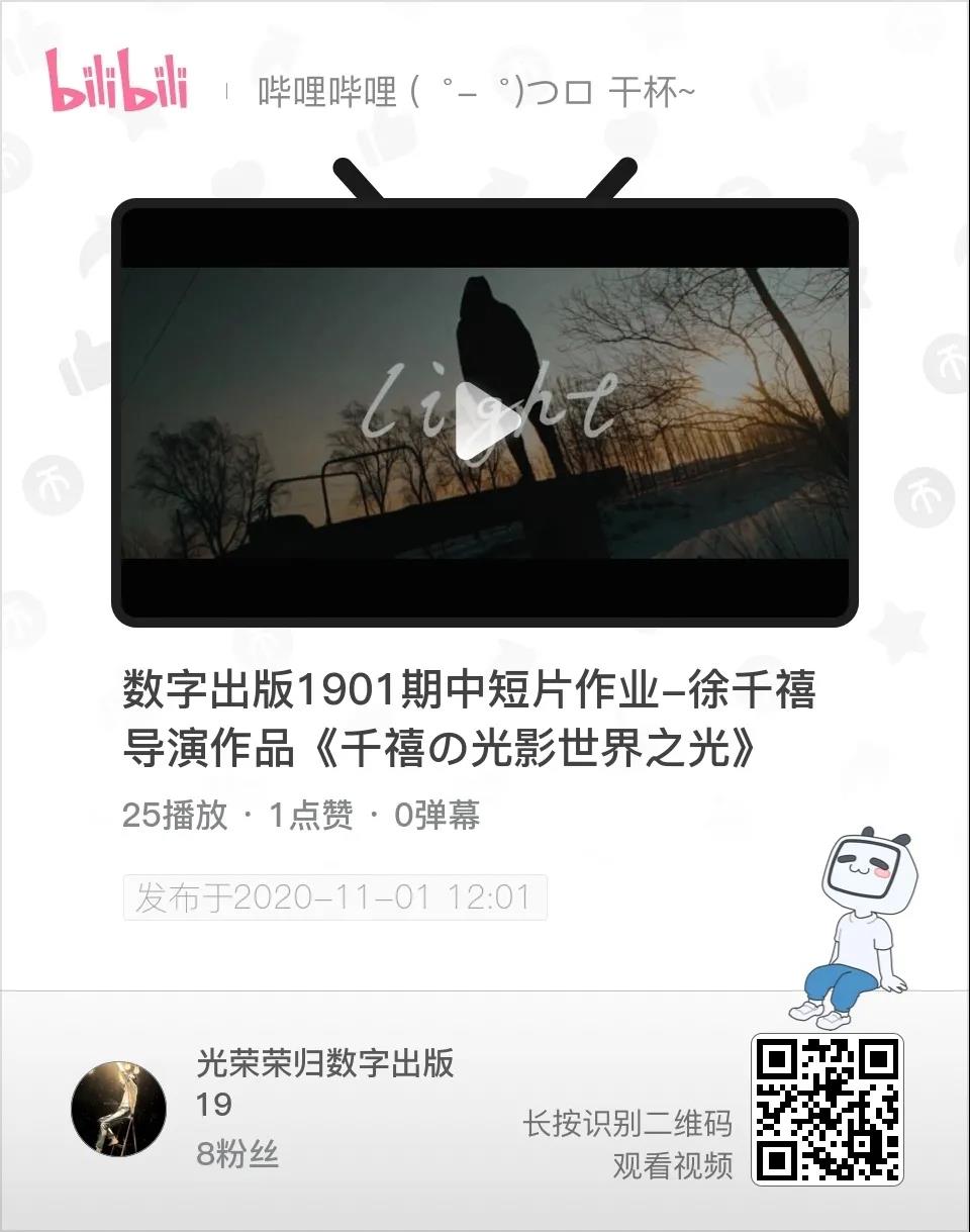 作为大二上学期非影视专业、没有相关配套课程的19级学生,他们拿起摄影机和话筒,在光影流动、美妙动听的世界中初寻影像和声音之美,创作出一部部超越自我的优秀作品,充分展示出他们对影音艺术的追求,对数字出版的热爱。