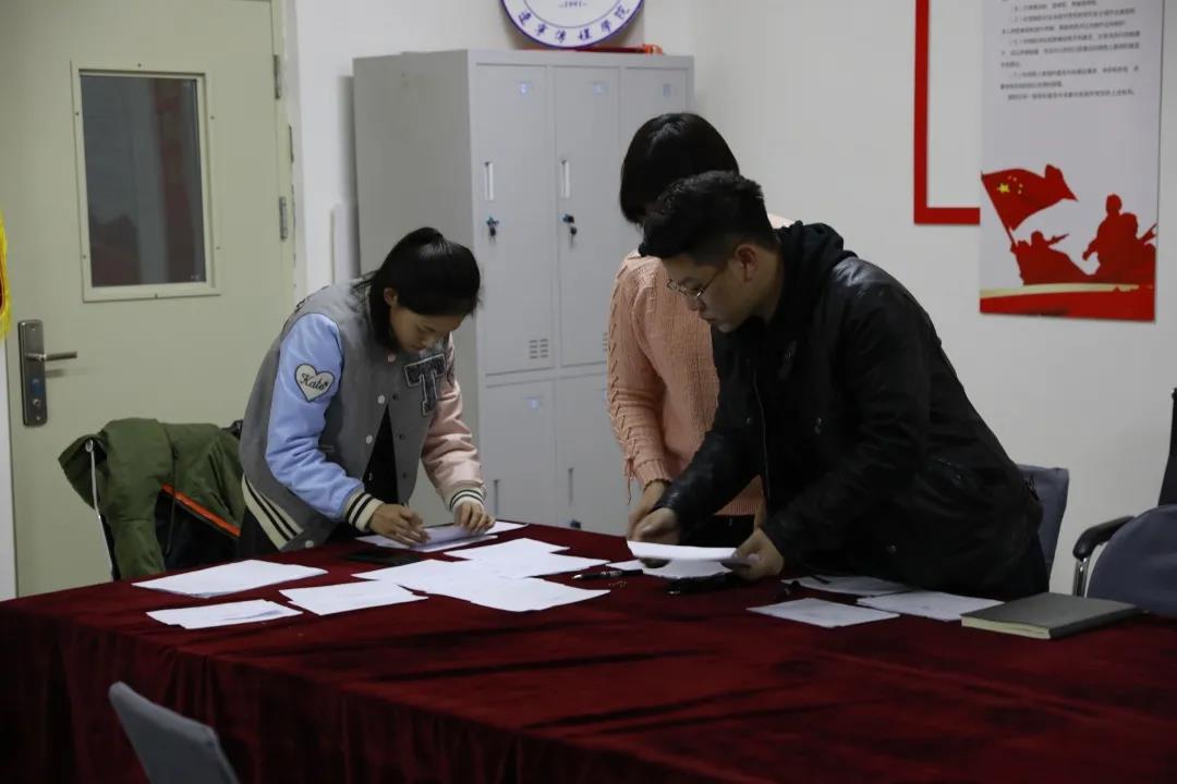 新闻传播学院党支部正式党员对入党积极分子进行投票。