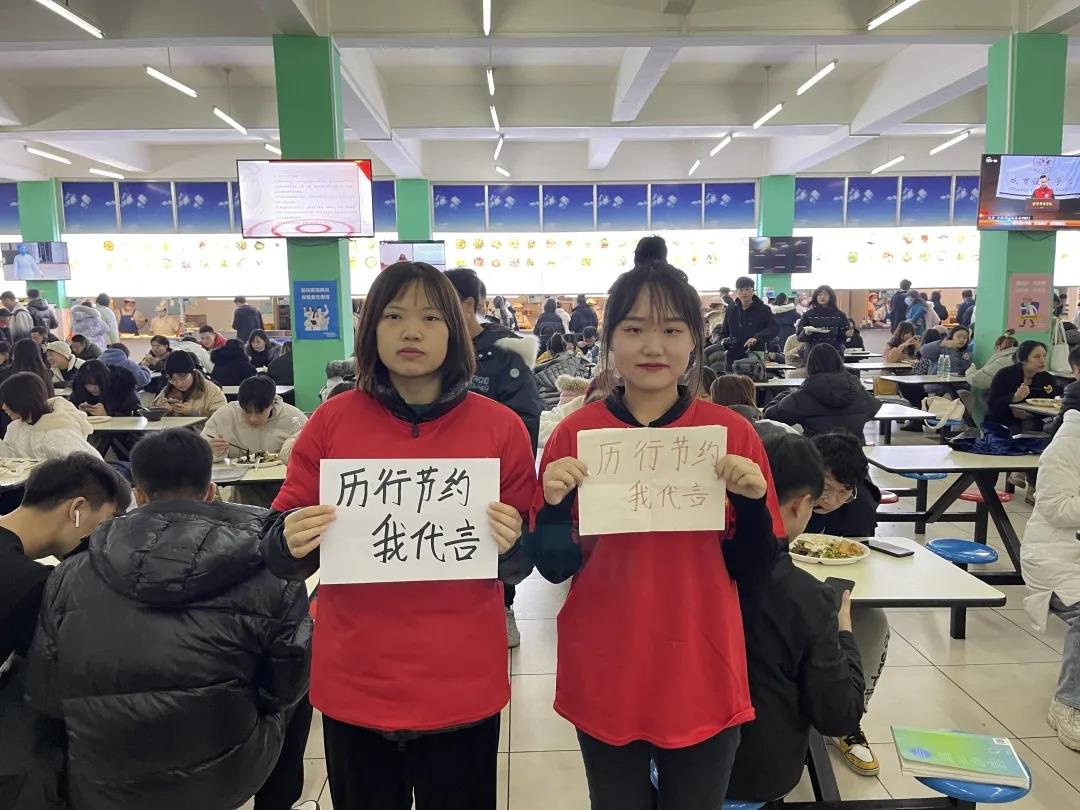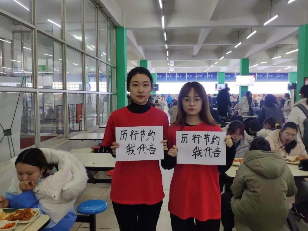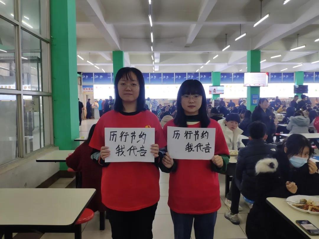 在“厉行节约,我代言”的活动中,学生党员积极在光盘行动中贡献自己的一份力量,向食堂负责人和用餐学生宣传节约粮食,号召老师学生坚持合理消费,珍惜粮食,杜绝浪费,点餐适量,剩菜打包,为消除奢侈浪费之风奉献自己的一份力量!