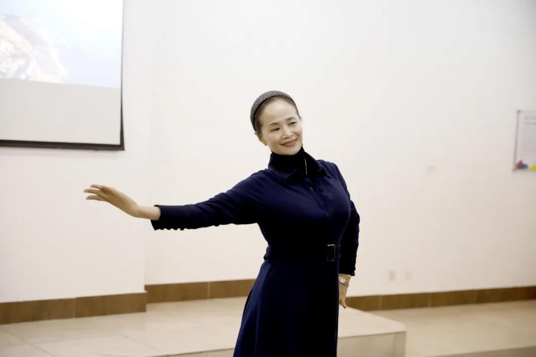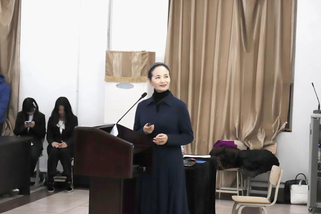 讲座中,周宏荣教授以自己丰富的美育见解结合自身的舞蹈学习经历、舞蹈演艺经历指导经历以及舞蹈教学经历,将亲身演绎、教学指导、参与创作、荣获大奖、排练演出的经典舞蹈作品穿插于讲座之中,理论与实践相结合,解析与案例相对应,周宏荣院长独到的审美见解、准确生动的解析,使学生们对美育有了深刻的理解。其中,在播放填补满族舞蹈历史空白的首部大型满族神话舞剧《珍珠湖》的经典舞段视频时,周教授——这位《珍珠湖》第一代女主角的饰演者,为我们做了现场同步表演,优美的舞姿、精彩的表演与屏幕上视频中的人物交相辉映,令现场师生赞叹不已。