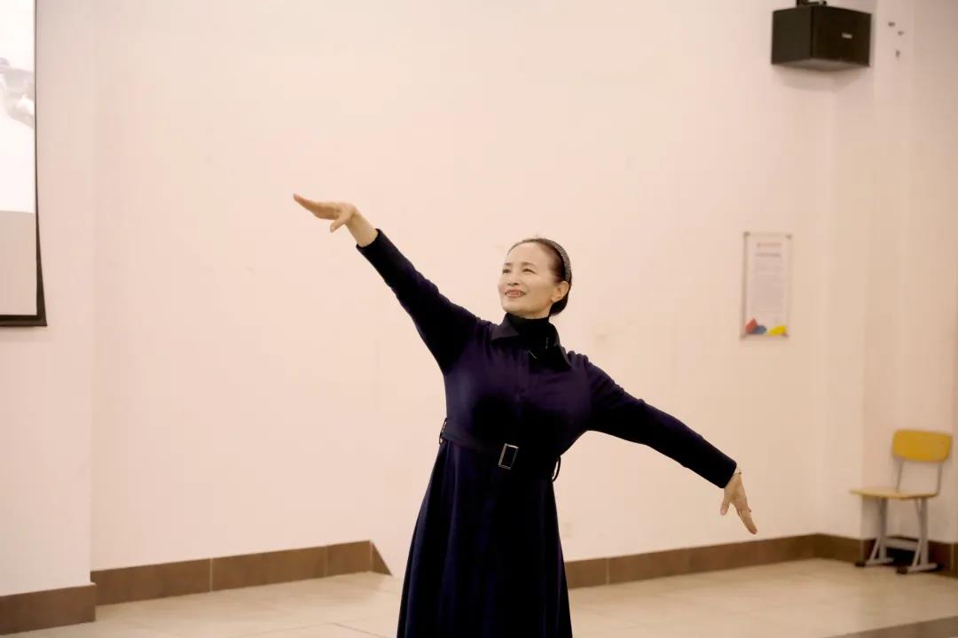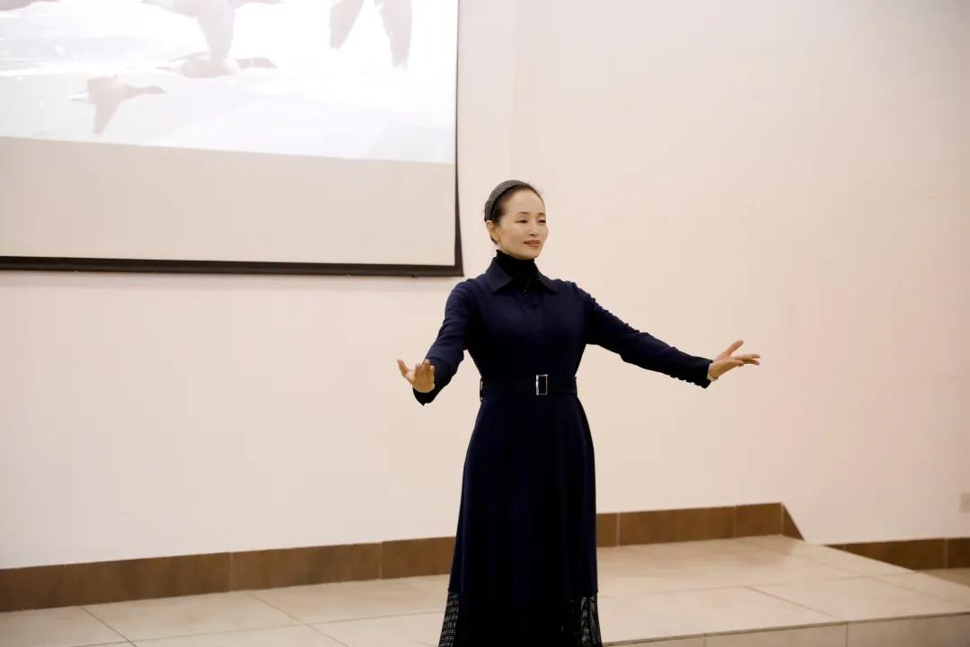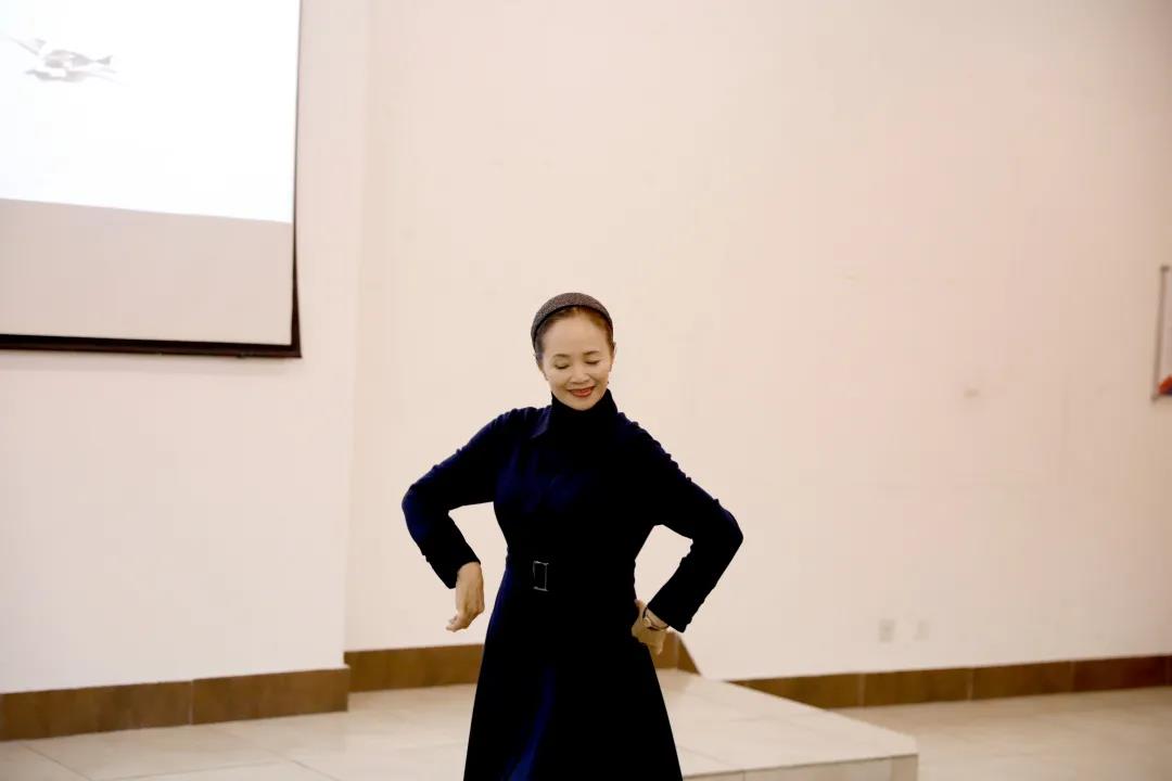讲座的最后,周宏荣教授以一段技艺结合、身心合一、优美动人的舞蹈——“鸿雁”,用舞蹈动作诠释了讲座主题并表达了她对同学们的期望寄语,观众席爆发出雷鸣般的掌声,为讲座画上圆满的句号。