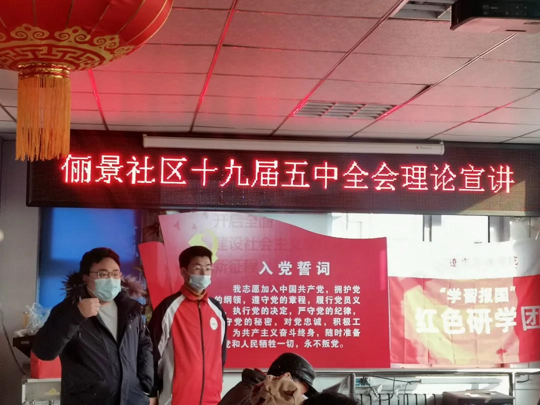 为了进一步贯彻党的十九大和十九届五中全会精神,加强社会主义文明建设,围绕举旗帜、聚民心、育新人、兴文化、展形象的使命任务,促进满足人民文化需求和增强人民精神力量相统一,推进社会主义文化强国建设,新闻传播学院受俪景社区邀请宣讲党的十九届五中全会精神。