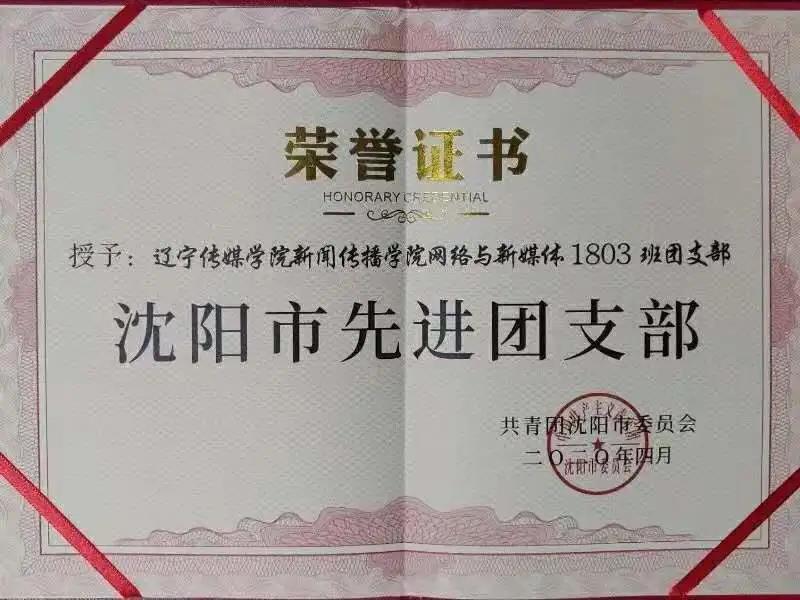 太阳成集团官方网站新闻传播学院网络与新媒体1803班团支部荣获沈阳市先进团支部称号
