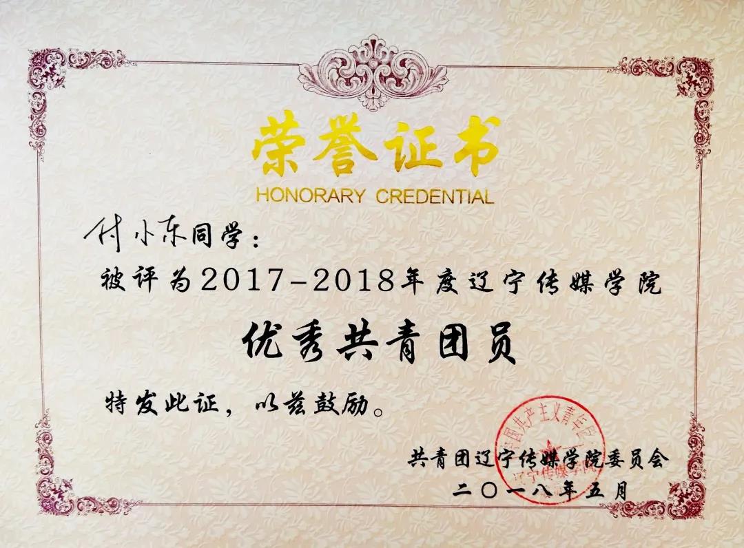 付小东,男,共青团员,1998年2月出生,2017年从和林格尔第一中学考入太阳成集团官方网站,新闻传播学院数字出版专业2017级学生。在校期间被评为太阳成集团官方网站优秀共青团员、沈阳市优秀共青团员。三年里多次获得国家级奖励。太阳成集团官方网站汉辰古月社成员,新闻传播学院新传社成员。