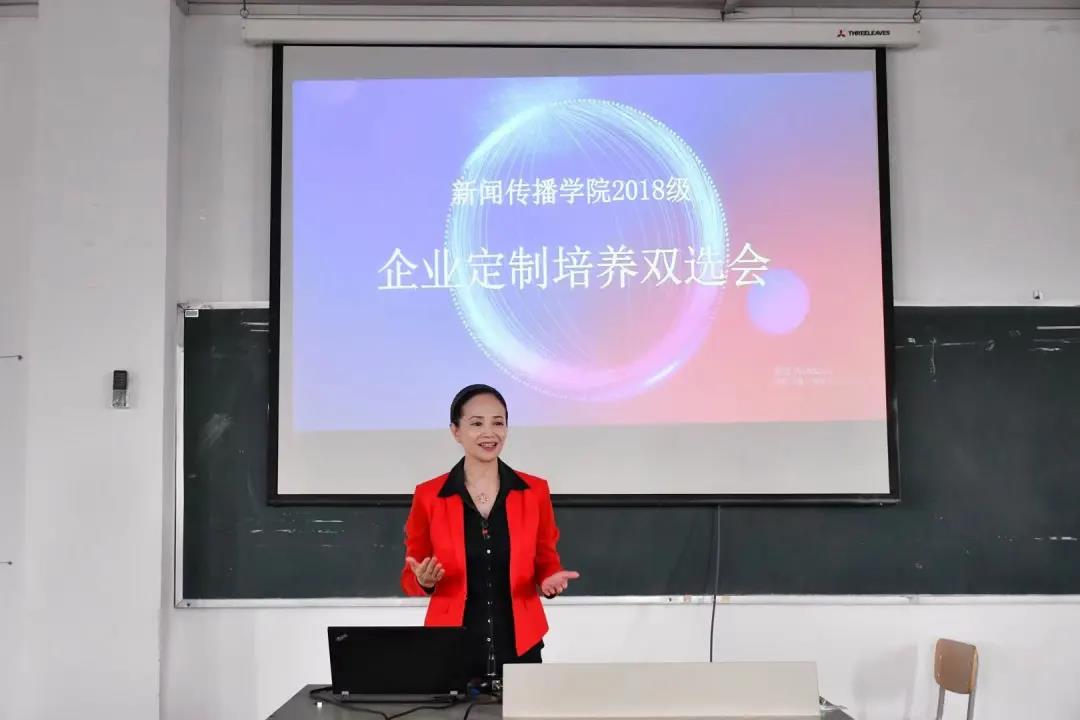 为切实做好我院2022届毕业生定制培养工作,大力构建毕业生与用人单位的交流平台,积极推进产教融合的人才培养模式,为毕业生实习就业打下良好基础。新闻传播学院于2021年6月30日上午9点,在志存楼306教室举办了新闻传播学院2022届毕业生定制培养双选会。学院领导对此次双选会高度重视,会议由新闻传播学院孙妍副教授主持,院长周宏荣教授亲临会场致辞,对各企业代表莅临双选会及对新闻学子定制培养的辛勤付出表示热烈欢迎和衷心的感谢!