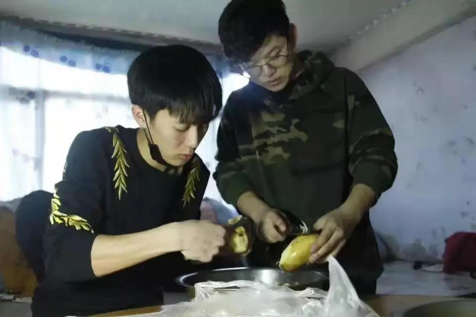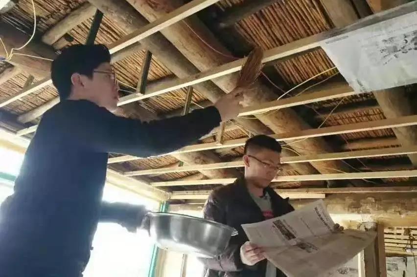 同学们自己动手打扫教室、宿舍,自己糊棚、烧灶做饭。