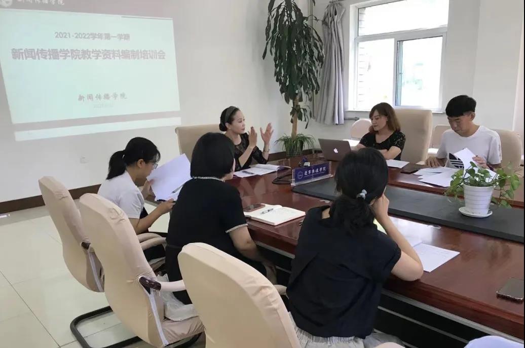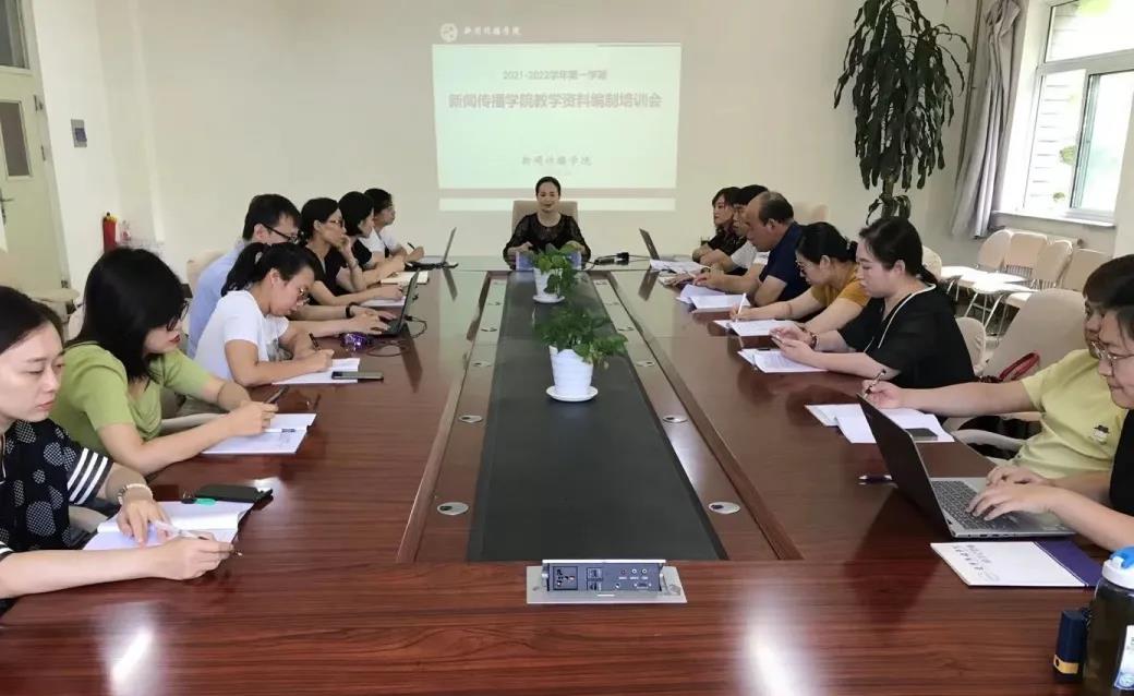 8月25日上午10点,新闻传播学院在教务处会议室召开2021-2022学年第一学期教学材料编制培训会。新闻传播学院院长周宏荣教授、副院长刘畅、新闻与传播系主任代君、网络与新媒体系主任孙吉及全体教师参加会议,会议由副院长刘畅主持。
