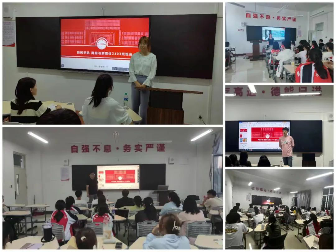 在专业教育会上,新闻与传播系、网络与新媒体系、广告与出版系的三位学科带头人,分别从师资结构、专业设置、培养目标、职业规划等方面介绍了各自专业情况,重点就新生所关心的专业及就业方面的内容进行了详尽的介绍和解读。副院长郝冰主持会议,对新生入学教育安排作进一步说明,并对全体本科新生作军训动员。会后,各系以班级为单位进行学业指导教师见面。
