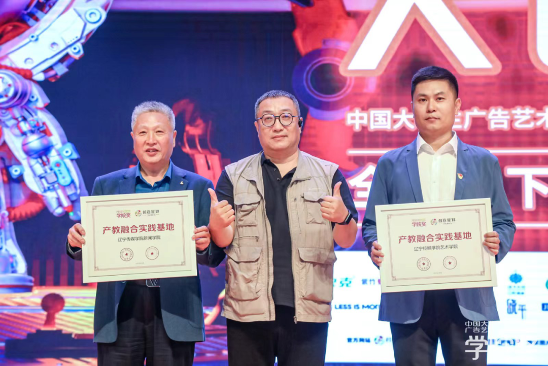 广告人文化集团副总经理、学院奖组委会代表马雪松先生为新闻学院、艺术学院颁发“产教融合实践基地”证书。