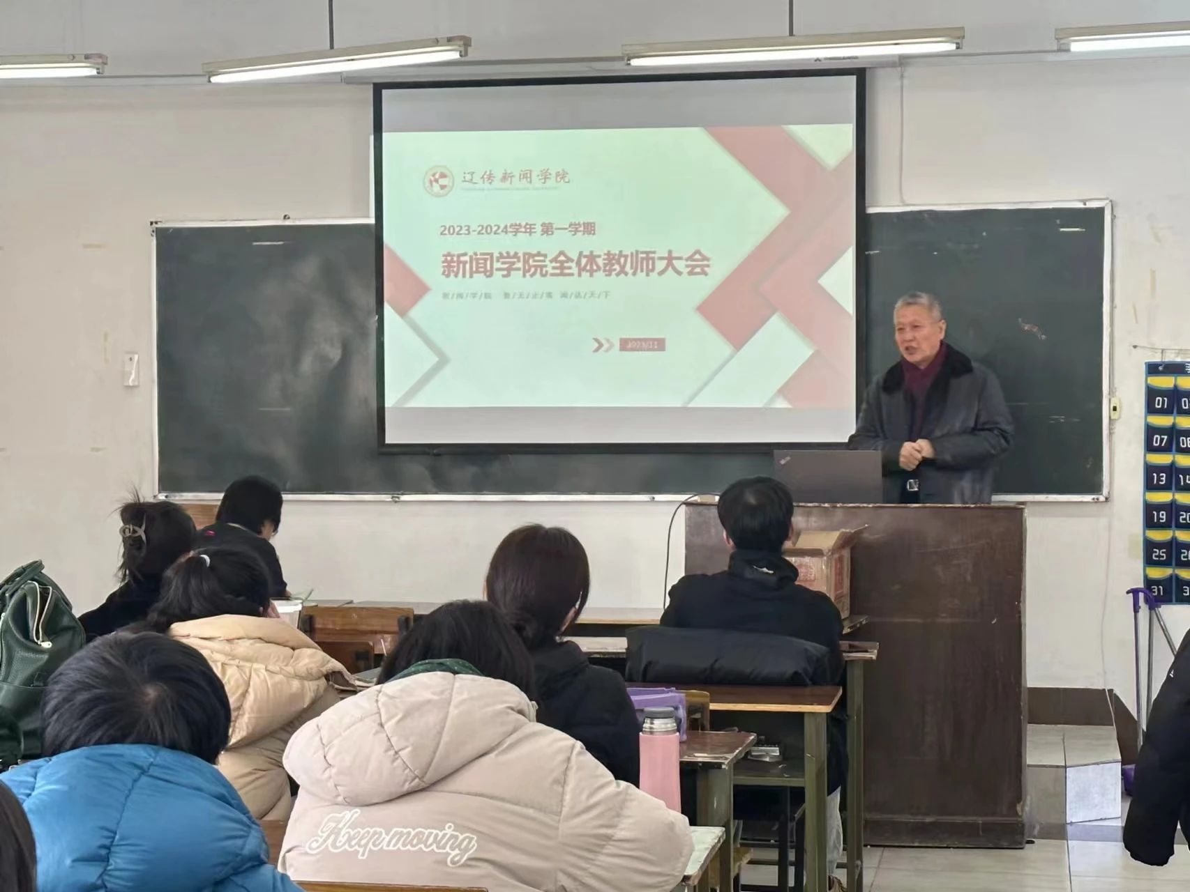 王院长的话如春风化雨,鼓舞人心;言之有法,指出工作的核心重点。最后王院长再次肯定大家的努力和贡献,号召新闻学院全体教师携手共进,同心同德,共同创造新闻学院美好的未来!