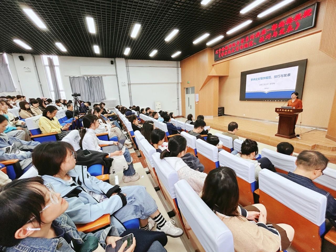 路漫漫其修远兮,吾将上下而求索。为了提高师生学术论文写作能力、提升科研水平、激发科研活力,2024年9月25日下午管理楼109报告厅内,新闻学院特邀沈阳工业大学郭雨梅教授作《学术论文写作规范、技巧与发表》专题讲座。科研处张迪处长、新闻学院管理团队及专业师生200余人参加本次讲座。