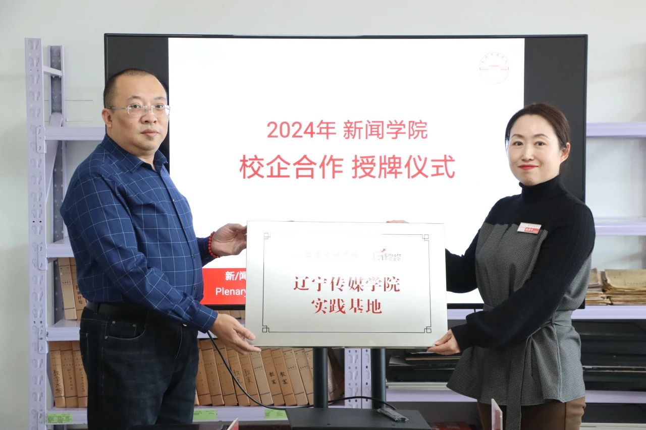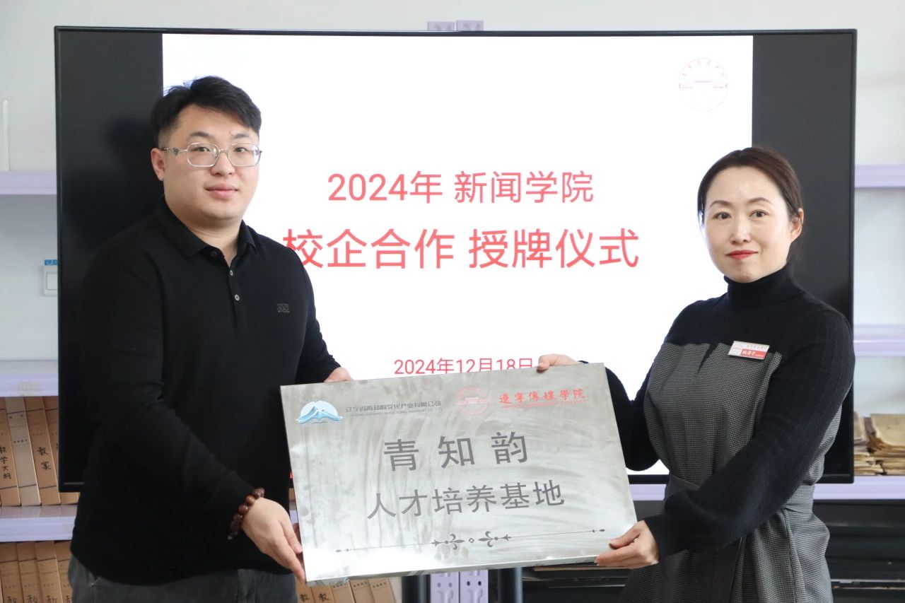 为进一步完善产教融合校企合作模式,提升人才培养质量,2024年12月18日下午,新闻学院校企合作签约授牌仪式在新闻学院院办会议室顺利举行。沈阳易诚金软科技有限公司、辽宁省青知韵文化产业有限公司的企业代表与新闻学院教师代表齐聚一堂,共同探讨校企合作新路径。