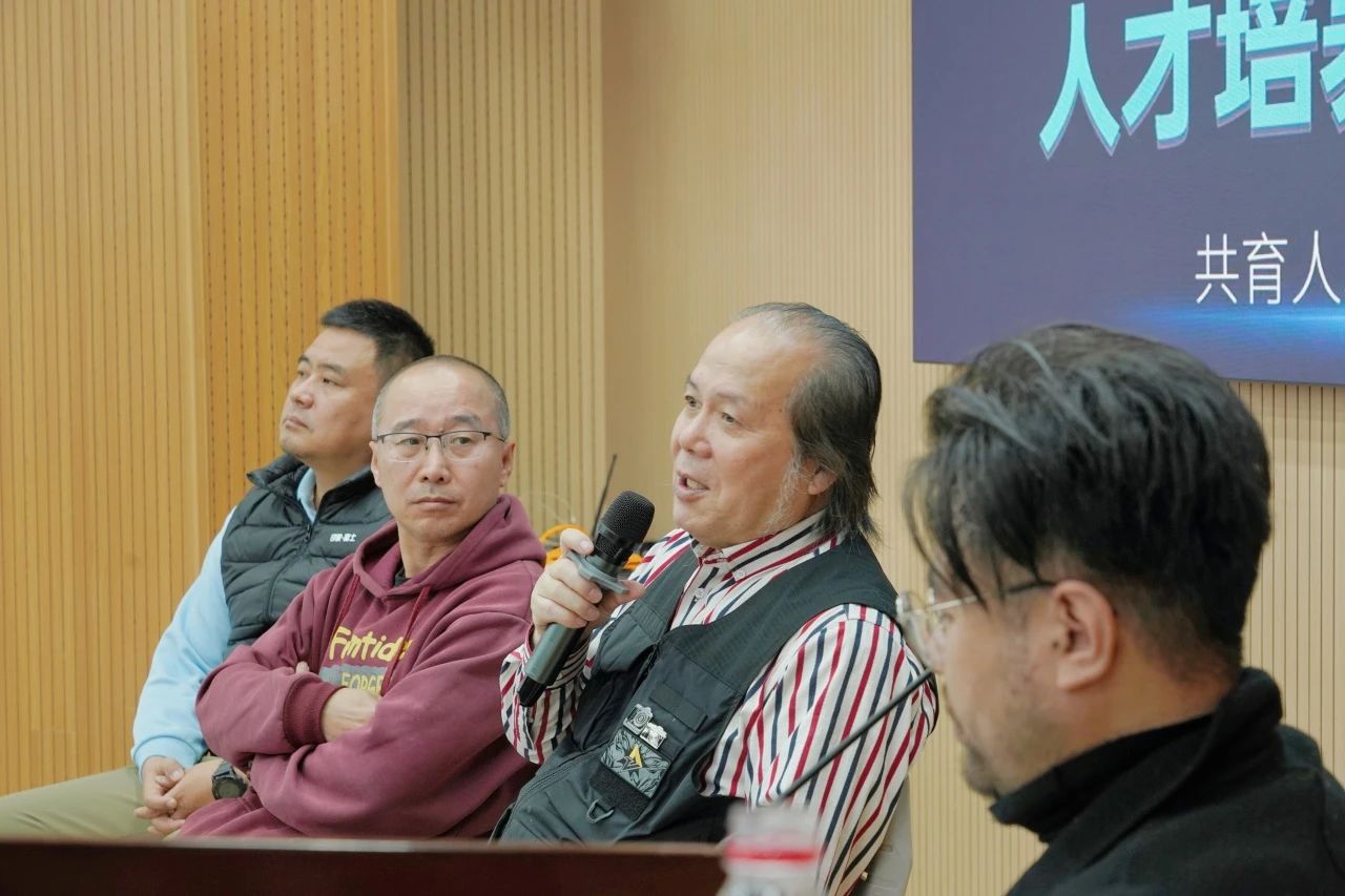 交流活动进入对谈环节,李万江教授、赵敬卫教授、关晓刚秘书长、赵功博副教授与李鹏飞主任坐而论道。对数字影像下人工智能技术赋能影像教学,新闻摄影人才的培养等分论题,进行分享。