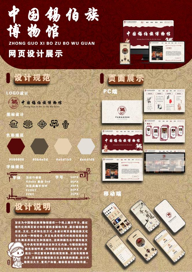中国锡伯族博物馆网页设计旨在通过数字化平台,全面、生动、直观地展示锡伯族的历史、文化、民俗、艺术等各个方面,使访问者能够深入了解锡伯族的独特魅力和深厚底蕴。网页整体设计风格简约大方,注重用户体验和视觉感受。该网页采用清晰的页面布局、简约的设计风格、丰富的多媒体资料和便捷的功能特点,为访问者提供了良好的用户体验和深入的文化探索之旅。同时,通过网页的互动性,促进了锡伯族文化的传承与交流,增强了民族凝聚力和认同感。