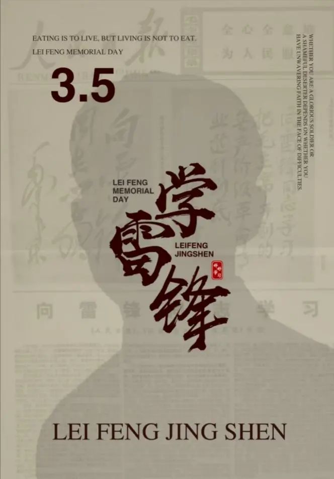 以“学雷锋”作为海报的中心,三个大字醒目突出,传递出向雷锋学习的号召。背景的报纸元素与雷锋语录相衬,营造出浓厚的时代氛围,彰显雷锋全心全意为人民服务的精神内核。3月5日是雷锋纪念日。海报中心的雷锋影子更是让我们回忆起雷锋的形象,激励着我们让这份精神财富在新时代持续绽放光芒。