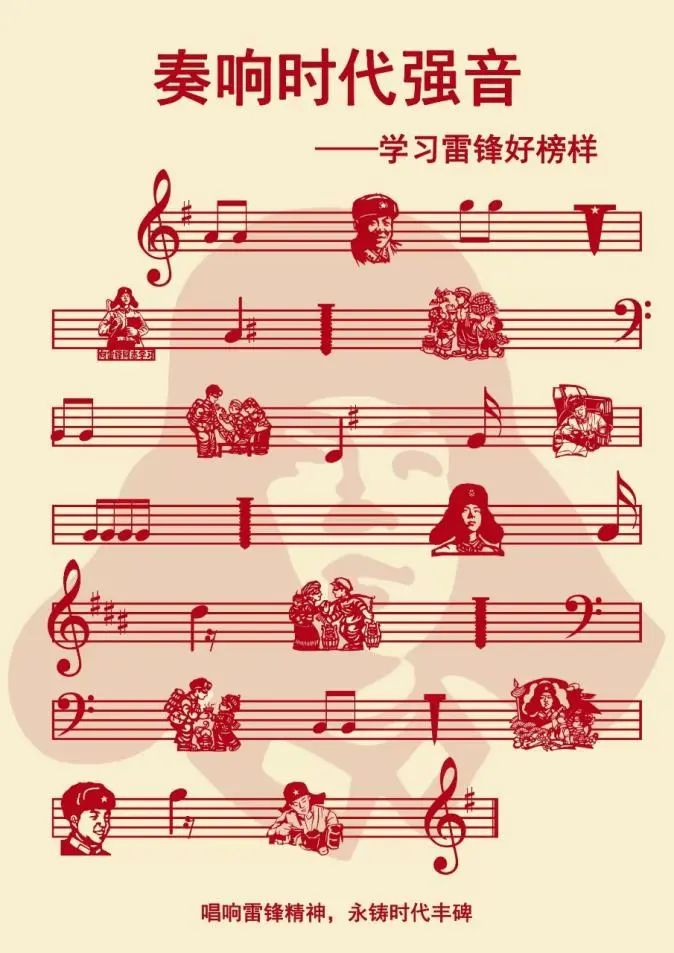 将雷锋精神化作跳动音符,融入时代旋律。海报以乐谱为载体,把雷锋的形象及做好事等场景嵌入音符间,寓意雷锋精神如美妙乐章,奏响在生活的每个角落。旨在号召人们传唱雷锋之歌,让雷锋精神的动人旋律在新时代持续回响,激励大众以实际行动续写雷锋故事,汇聚成推动社会进步、弘扬美德的时代强音。