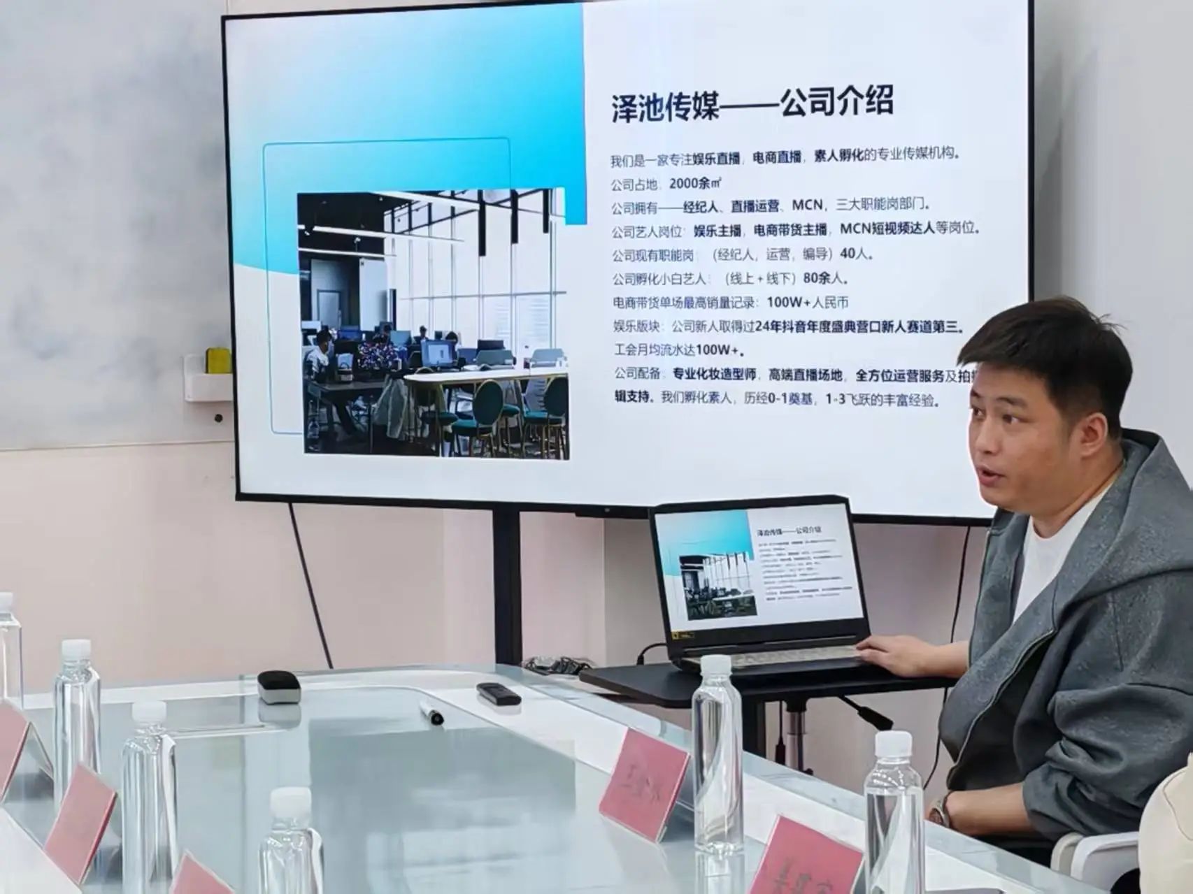 泽池传媒总经理姜建宏详细介绍了公司的运营模式与发展战略。作为一家以“娱乐+电商+短视频+直播+IP孵化”为核心的综合性传媒企业,泽池传媒通过精细化服务与流量运营策略,在文娱直播、艺人经纪、短视频商业化等领域形成独特优势。姜建宏特别强调:“我们致力于培养员工在1至3年内具备独立创业能力,而非长期依赖公司。这种‘孵化型’人才战略,既契合行业快速迭代的特点,也为年轻人提供了更广阔的发展空间。”