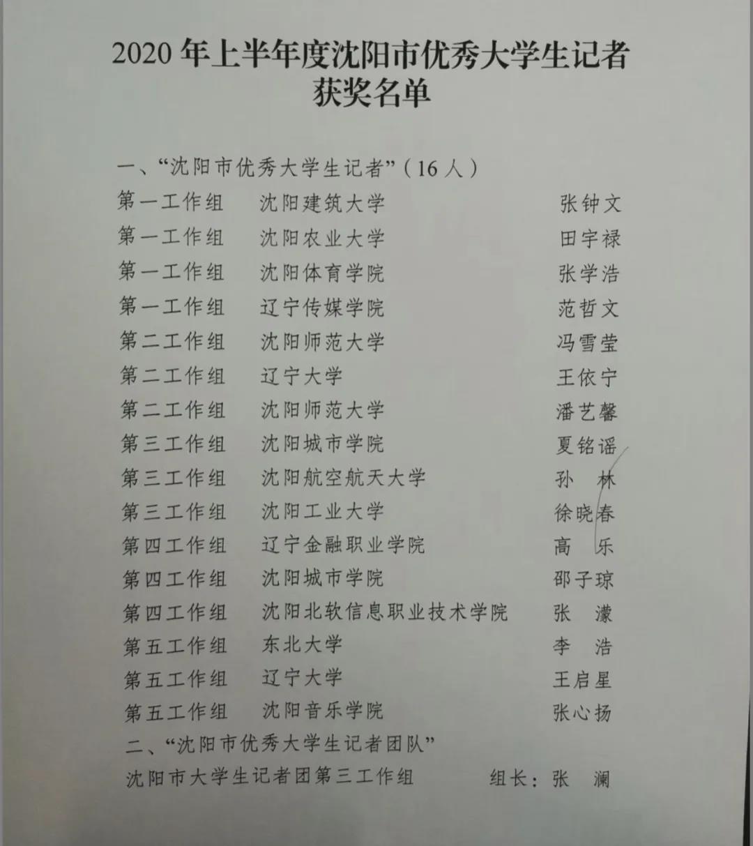 喜报|我院范哲文同学荣获沈阳市优秀大学生记者称号